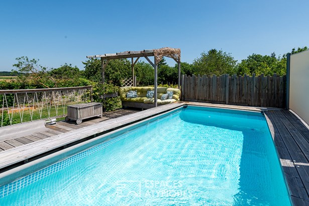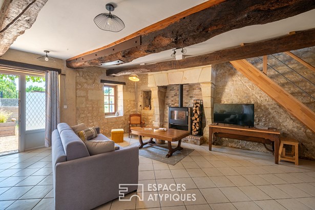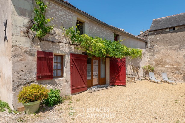 Outside, the outbuildings complete this exceptional property: dovecote, workshop, barn and covered parking blend harmoniously into a wooded garden, where vegetable garden, vines and flower areas coexist. The furnished terrace and the above-ground swimming pool contribute to the pleasure of this place, where a peaceful atmosphere reigns, in the heart of the village but sheltered from view, with the countryside as a backdrop. The commune of Vaudelnay, located in the heart of the vineyards, offers the amenities of a village, such as schools and local shops, 6 km from Montreuil-Bellay and 20 km from Saumur (TGV station).