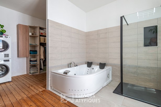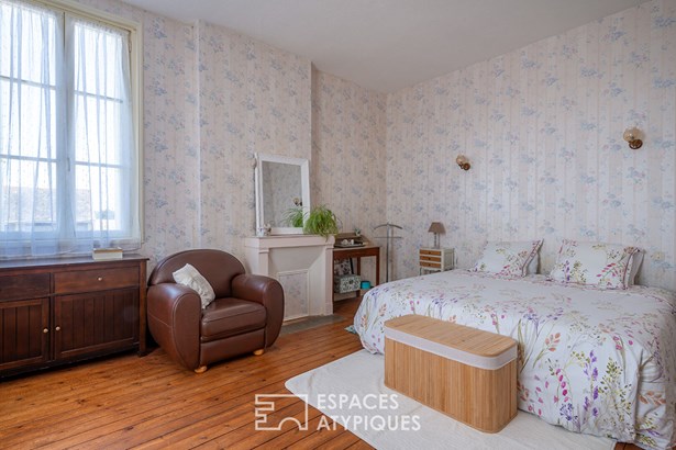 The living room, warmed by a stone fireplace, offers a warm and intimate atmosphere, while the breakfast kitchen extends this convivial living space on the ground floor. Upstairs, a landing-office leads to the master bedroom, consisting of a spacious bedroom and a bathroom equipped with a dressing room. Under the eaves, a second bedroom and a convertible attic complete this functional layout, suitable for various lifestyle projects. The secondary cottage offers a living room with an open kitchen, two bedrooms, each with its own bathroom and toilet, ideal for entertaining or considering a hospitality business.