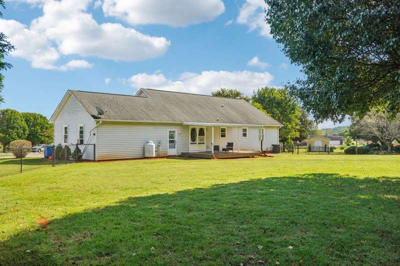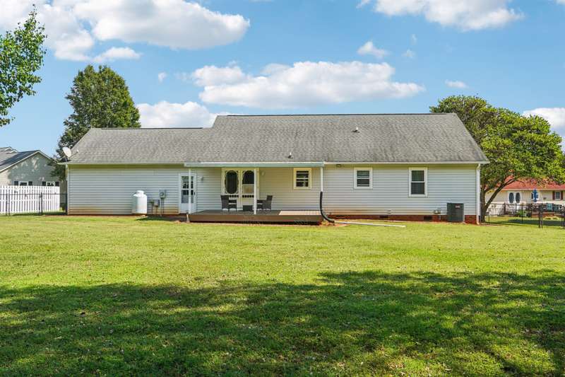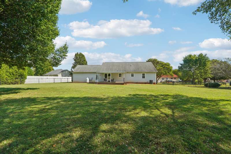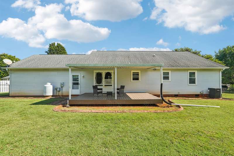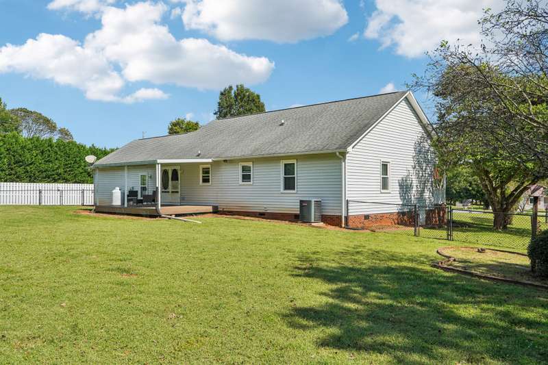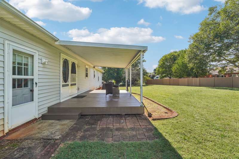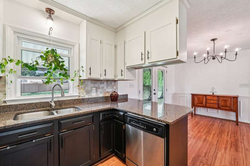 Very well maintained 3 bedroom 2 bath located on a cul-de-sac lot in the popular Deercroft neighborhood! Freshly painted covered back deck overlooks a huge yard with outbuilding. Open living area with cathedral ceiling and fireplace. Kitchen features granite countertops, disposal, breakfast bar and a pantry. Many updates including hot water heater 4yrs, roof in 2015, Heat pump replaced in 2021. New lights, faucets, fans and toilets. No carpet! Prefinished wood and laminate wood flooring throughout. Bathroom features double vanities. Walk -in closet in the primary and 2nd bedroom. Oversized garage with 2 doors and new epoxy flooring. All appliances remain including washer, dryer and new refrigerator.