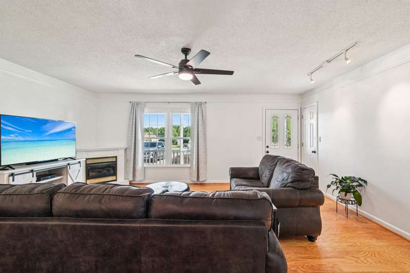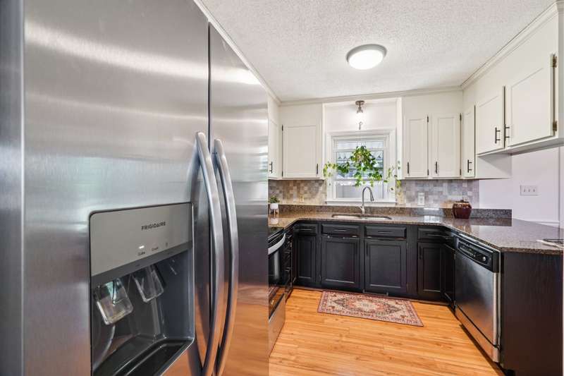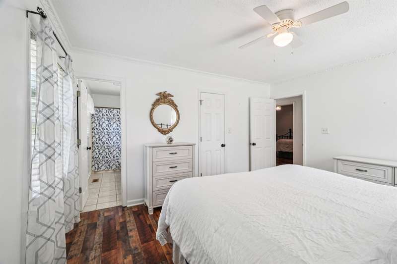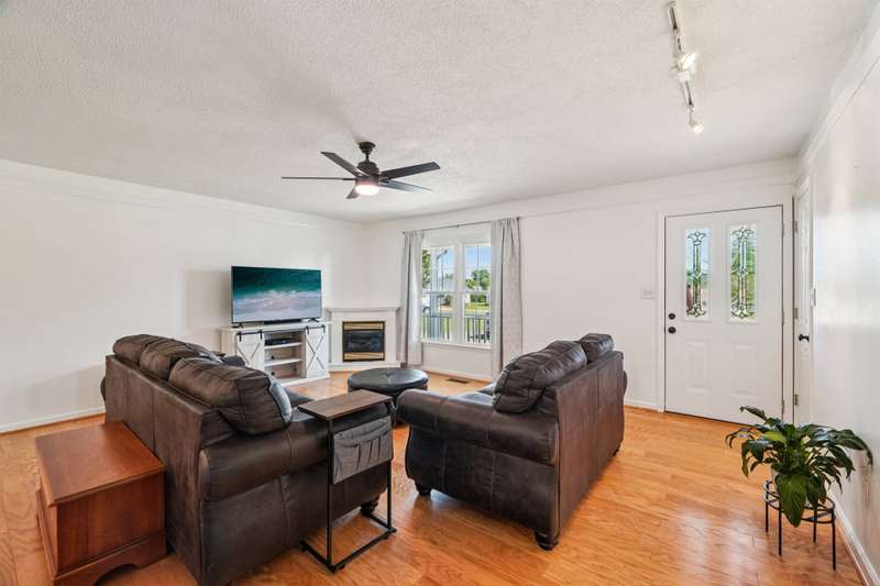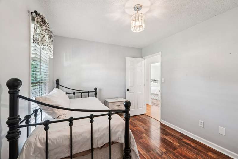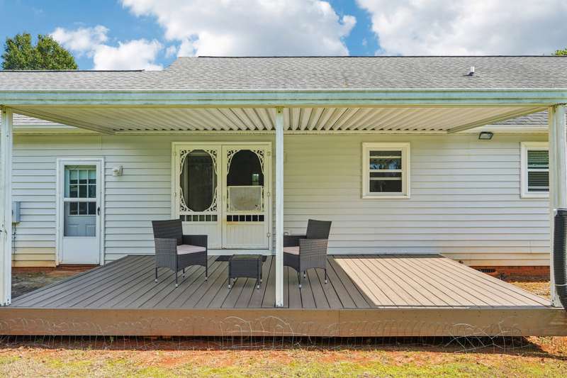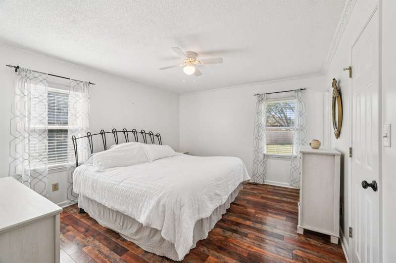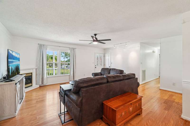 Very well maintained 3 bedroom 2 bath located on a cul-de-sac lot in the popular Deercroft neighborhood! Freshly painted covered back deck overlooks a huge yard with outbuilding. Open living area with cathedral ceiling and fireplace. Kitchen features granite countertops, disposal, breakfast bar and a pantry. Many updates including hot water heater 4yrs, roof in 2015, Heat pump replaced in 2021. New lights, faucets, fans and toilets. No carpet! Prefinished wood and laminate wood flooring throughout. Bathroom features double vanities. Walk -in closet in the primary and 2nd bedroom. Oversized garage with 2 doors and new epoxy flooring. All appliances remain including washer, dryer and new refrigerator.