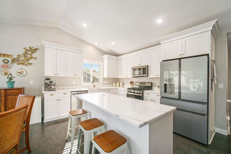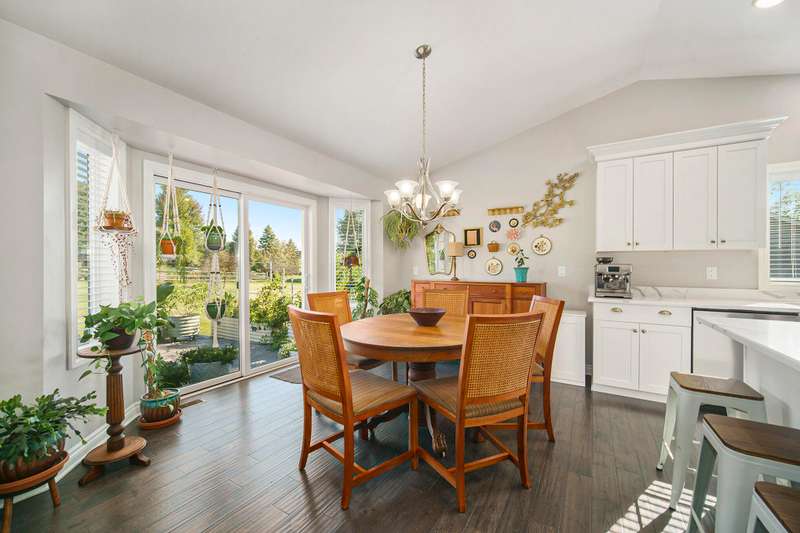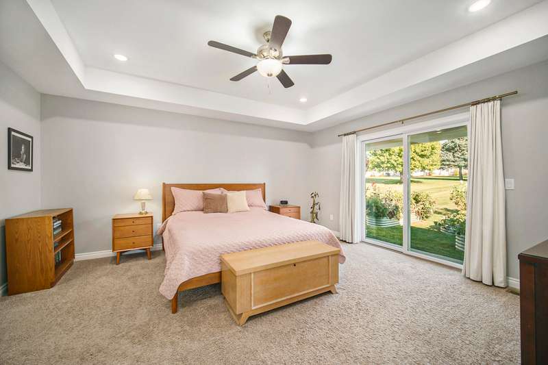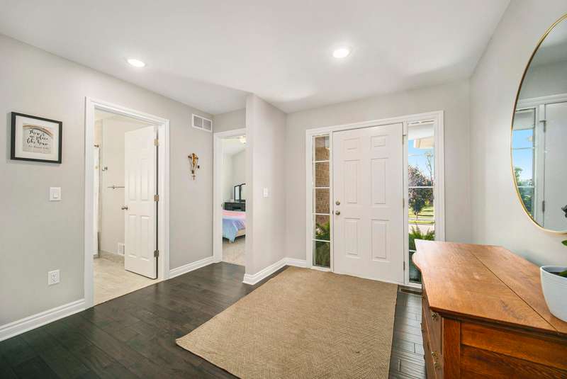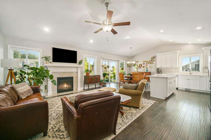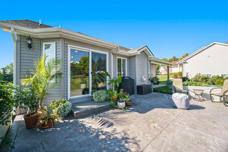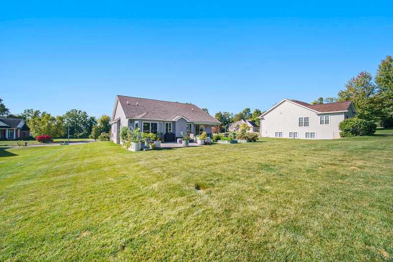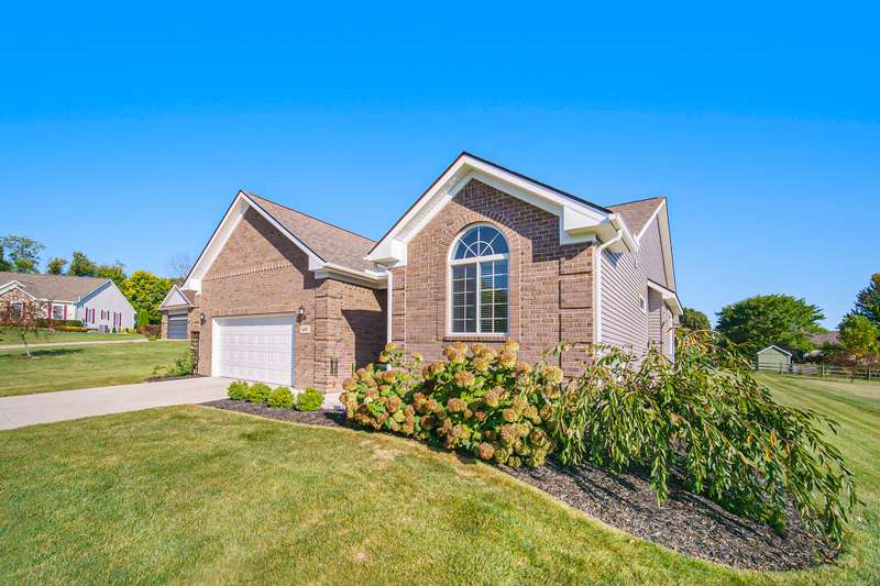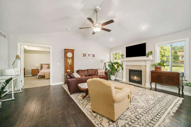Welcome home to the Viviana Model in the desirable Red Maple Heights! Finished in 2023 with upgrades including: quartz countertops, spacious island and eating area, custom built LaFata cabinets, beautiful hardwood floors through the living area, cathedral ceilings, gas fireplace with surround, granite counters in baths. 4 bedrooms, 2.5 baths, including a bedroom in the basement with egress and plumbed for a bathroom. Primary suite has a doorwall to a covered patio, tray ceiling, huge walk in closet, large bath with a tiled shower. The beautifully landscaped .44 acre property is sodded with an irrigation system and a new 23x20 patio. All in a quiet cul de sac, close to downtown and schools and no HOA fees.