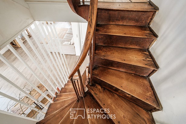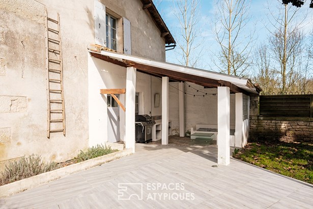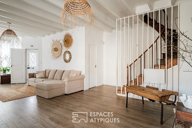 Located in the heart of a dynamic and sought-after town 10 minutes from Niort, this former coaching inn authentically combines old and new. With a total surface area of approximately 198 sqm, this rare property is composed of two separate buildings and benefits from a private bridge that connects the house's garden and a large wooded park on the banks of the Sevre, reinforcing the historic character of the place. The building's steps open onto a hall leading to a storage area.
