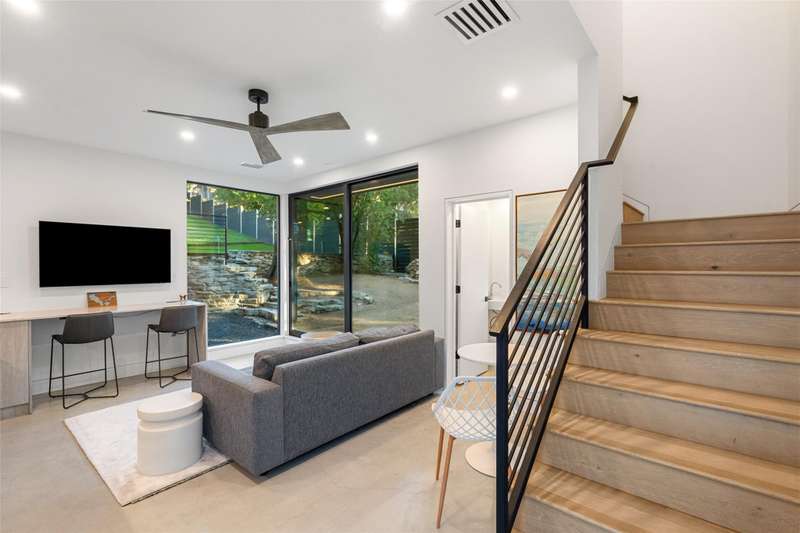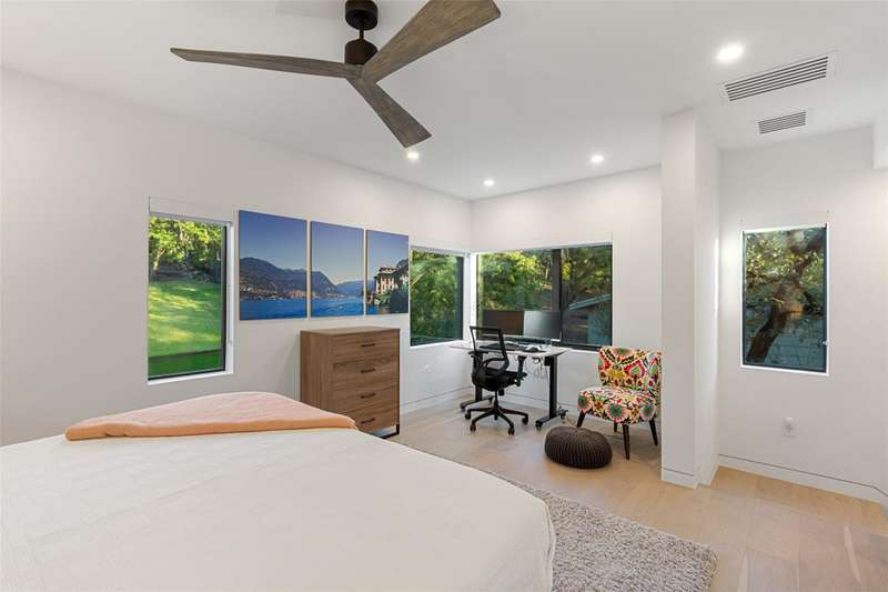 Additional features include an integrated Apple Home system, home water filtration, three HVAC units with dehumidifiers, dual tankless water heaters, and a 12-zone irrigation system. Private, quiet, and meticulously crafted, this home offers modern luxury in one of Austin's most desirable neighborhoods.