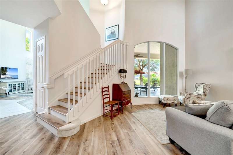 Stunning 4BR/3BA/3CG Emerald model in Millstone Landing with over 3,000 sq ft of living space and soaring ceilings! Features luxury vinyl plank flooring throughout, a spacious and open kitchen with newer stainless steel appliances and upgraded cabinets. The downstairs owners suite includes dual walk-in closets, Roman tub, and his/her vanities. Enjoy the covered patio with extended pavers and large backyard with plenty of room for a pool! Resort-style amenities: pickleball, tennis, basketball, lap pool, large clubhouse, fitness center, and library. Room sizes are approximate and subject to err
