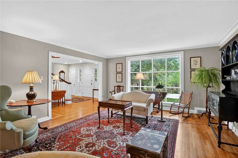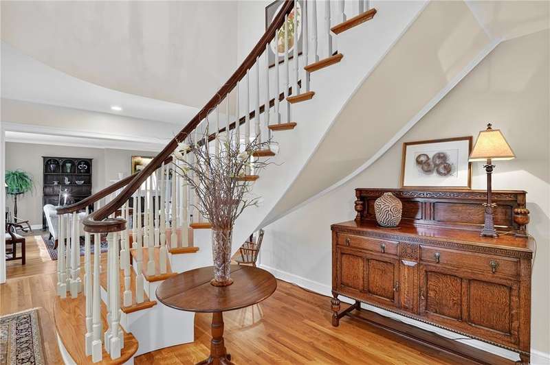 Welcome to 930 Valleyview Rd, a timeless white brick Cape Cod nestled in the heart of Mt. Lebanon's prestigious Virginia Manor neighborhood. This beautifully updated residence blends classic charm with modern living, offering sophistication and comfort at every turn. Step into a grand, sun-drenched entryway where a sweeping staircase makes a stunning first impression. The main level features a spacious and light-filled layout with thoughtfully removed walls for improved flow?perfect for both daily living and entertaining. The first-floor primary suite offers convenience and privacy, complete with a luxurious ensuite bath. Enjoy a fully renovated kitchen with high-end finishes that opens to an inviting family room, along with tastefully updated bathrooms throughout the home. Outdoors, a new aggregate patio surrounded by lush gardens and professionally landscaped grounds. Mature trees provide natural privacy, creating a peaceful retreat just minutes from schools, shops, and dining.