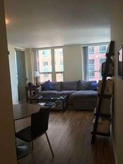 Lovely junior one bedroom in the Sterling! Great location - short walk to the Loop, close to tons of restaurants, shops and nightlife. Wood floors, balcony, in-unit washer and dryer, separate desk/office area, granite counter on the pass-through. The bedroom does have a door to close it off from the rest of the apartment. Separate area for office/desk. Great closet space, in-unit W/D. Full amenity building including 24 hour doorman, pool, tennis courts, dog run, fitness center and weight room, outdoor party area.