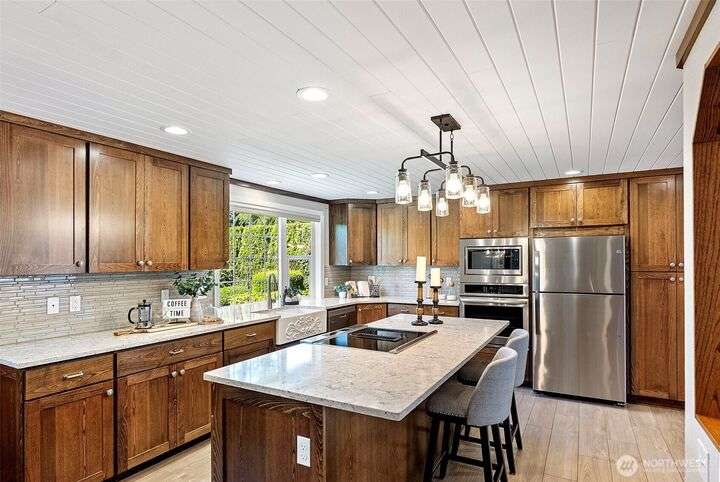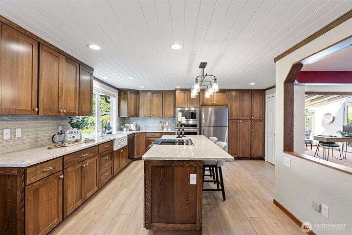 This beautifully maintained, 1-story home has been lovingly cared for over the past 3 decades & is move-in ready! The recently renovated kitchen features quartz counters, apron-front sink, ss appliances & double oven, spacious island w/ bar seating & new flooring. An updated full bath & 4 bdrms provides flexibility for guests, hobbies, or work-from-home needs. The primary suite includes a huge walk-in closet, spacious shower, & sliders out to a private deck-perfect for your morning coffee. Outside, the gorgeously manicured yard is a gardener's dream & offers a private patio, ponds, & a dog run. Enjoy peace of mind w/ a durable metal roof, brand-new exterior paint & gutters (2024), + sprinkler system. Located within the UP School District.