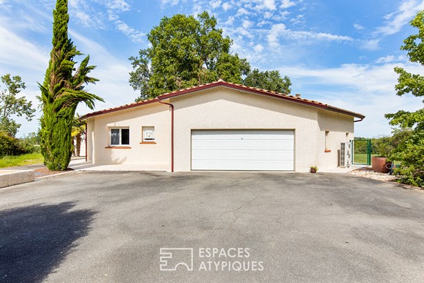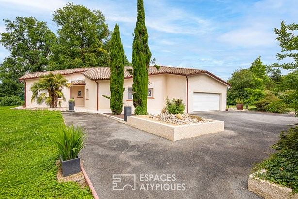 Located between Moissac and Castelsarrasin, this single-story architect-designed house offers 232 m2 of living space on a superb 4,000 m2 plot with space for a swimming pool.