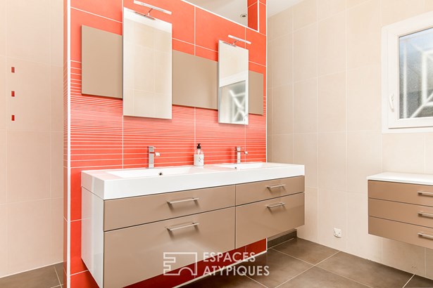 A true cocoon, it includes a bedroom (or office), a master suite with shower room and large dressing room, as well as an ergonomic laundry room with direct access to the garden. This space also connects to the kitchen and garage for optimal comfort.