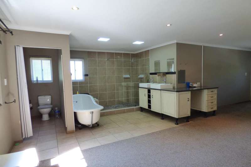A home for a large family! Situated in a quiet street in Rynfield, this home has it all. A large lounge with a pub area in one corner, close to the undercover outdoor braai area. Separate dining room which is open plan to the kitchen. Country style kitchen and scullery. There is a guest loo and a bathroom to service the two carpeted bedrooms downstairs. Upstairs is a huge family room and another two large bedrooms. The fifth bedroom, the main bedroom, has an open plan bathroom with a slipper bath. A walk-in closet and a big, carpeted room completes the main suite. A flatlet is situated close to the gate, making it an ideal work from home space if needed. A small entrance leads to a bedroom, kitchen and bathroom with a shower. There is a covered parking area. The garden is level and neat. A double auto garage plus an extra single one. A garden Wendy house for the children and another for garden storage. So, if you have an extended family this would suit you perfectly. Call for a viewing today.