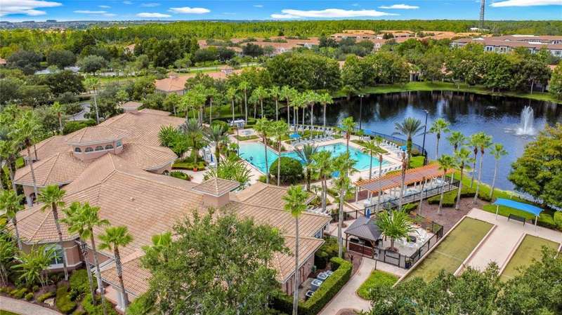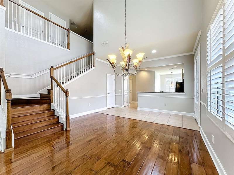 Looking for the perfect retreat in an awesome gated community? You just found it!!! This beautiful 2,400+ square foot home is located in Champions Gate. It is close to the attractions, shopping with easy access to I-4, 429, 417 and the Turnpike. The home has a large Family room/Dining room combination with a 2 story ceiling the gives a spacious feeling to area. The Kitchen has Granite counters with Cherry cabinets, a generous Island, a separate Breakfast eating area and very large Pantry. The floors in the living areas and first floor Primary Bedroom are beautiful Cherry and there is tile in the wet areas. Upstairs are the additional Bedrooms, a Loft and an Office or study area. Outside, you can relax on the screened Patio that overlooks a wooded area. This is a Great Home, waiting for a new owner. Let that be you!!!!