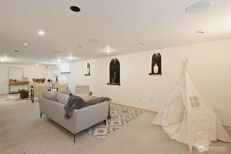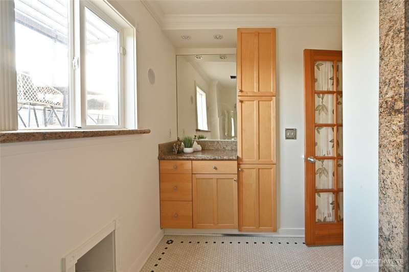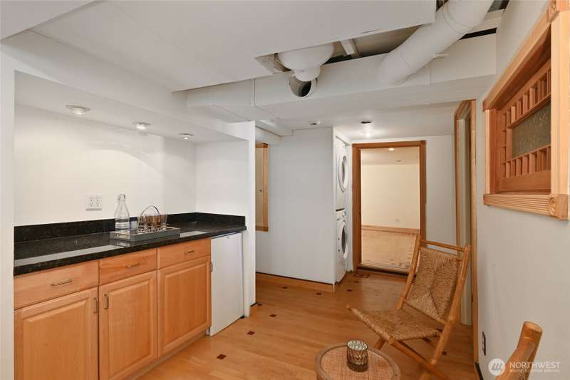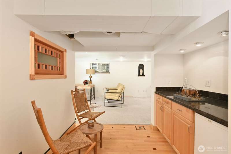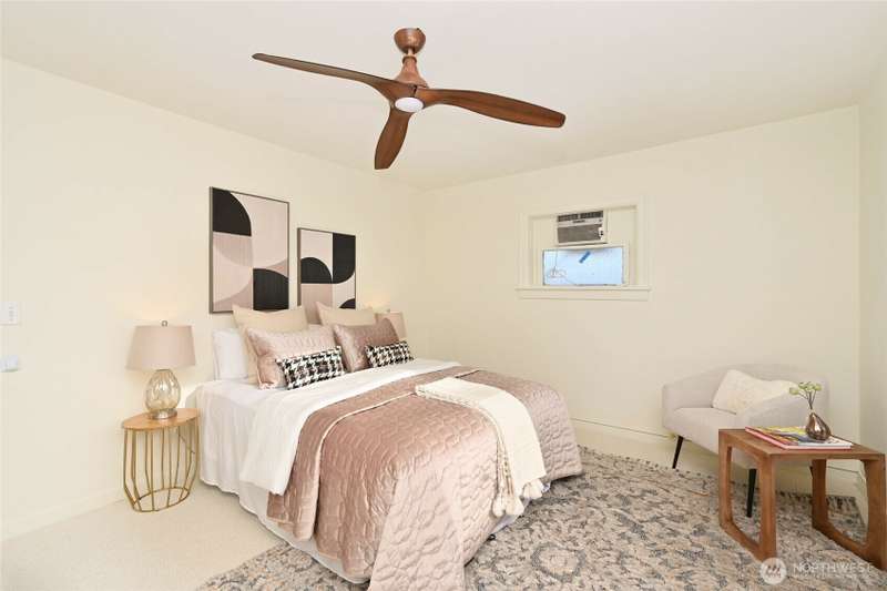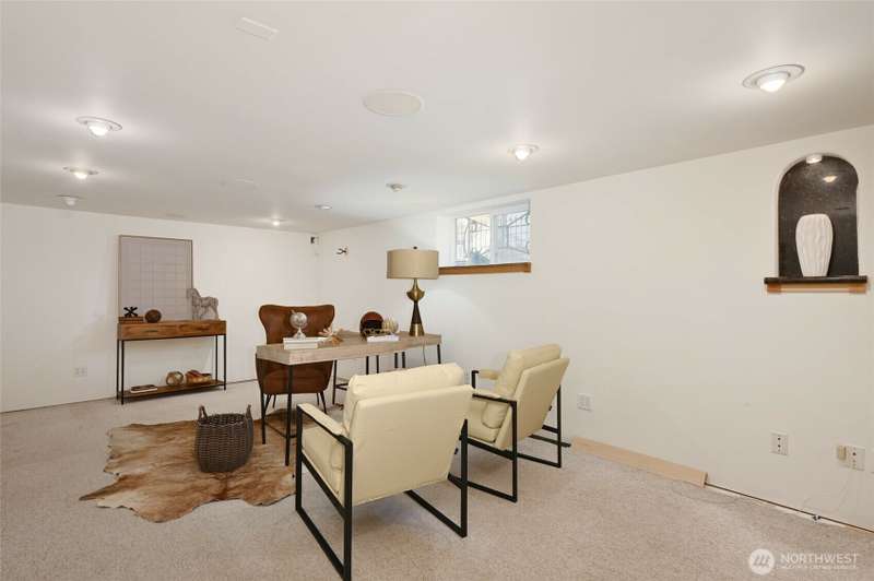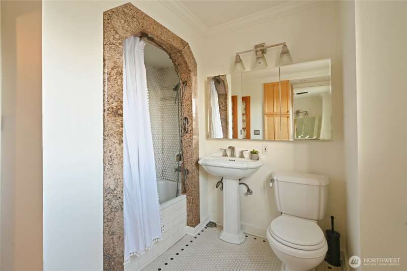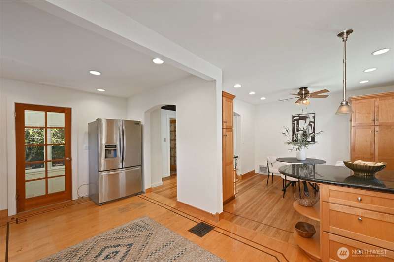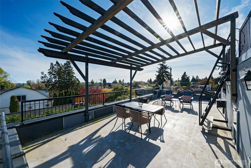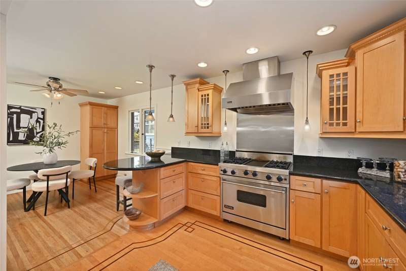 Rare opportunity to own a treasured one of kind 'castle' w/stunning architectural features & endless possibilities in Loyal Heights! Curved staircase invites you into the grand ballroom w/curved ceilings & stately fireplace. Oak hardwoods w/mahogany inlay. Art niches & wrought iron details. Kitchen updated w/maple cabs, Viking range & stone counters. 4 bd+office upstairs. Finished lower-level w/back entrance is an ideal theatre rm, office or bonus. Custom wrought iron railings on rooftop deck w/ Mt. Rainier views. Reimagine or build, double lot offers incredible potential. Subdivide Possibility. Perfect canvas for something truly special. Easy access to Ballard’s fabulous amenities: boutiques, upscale dining, hip bars & parks.95 Walk-score!