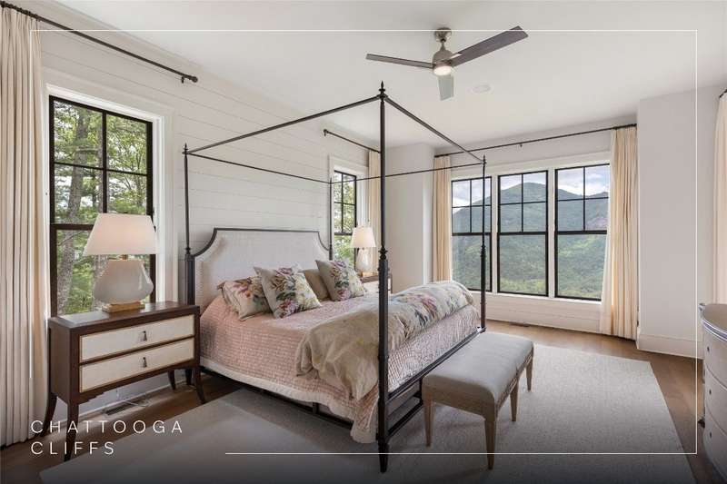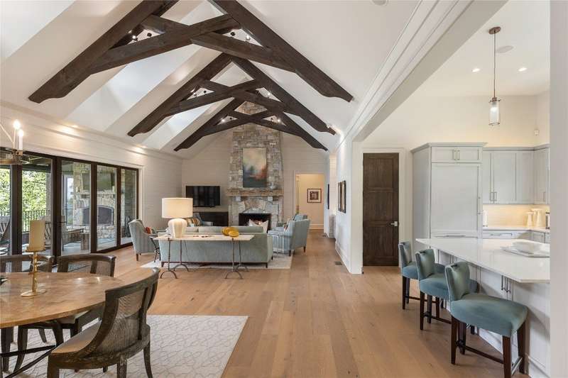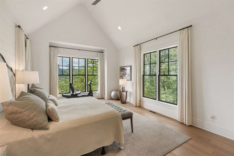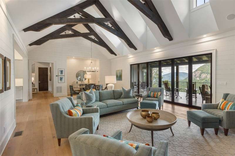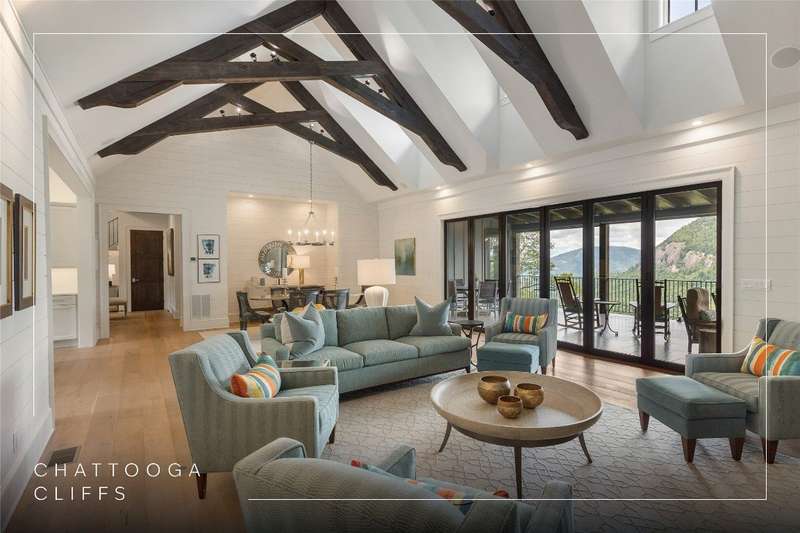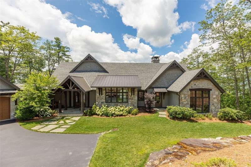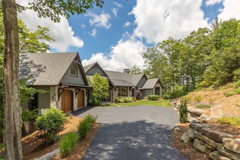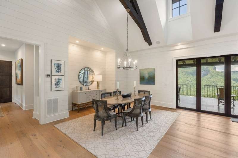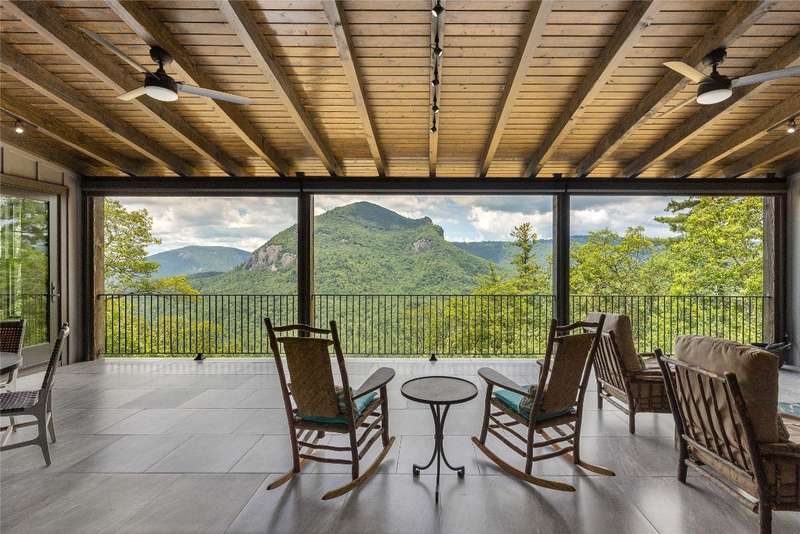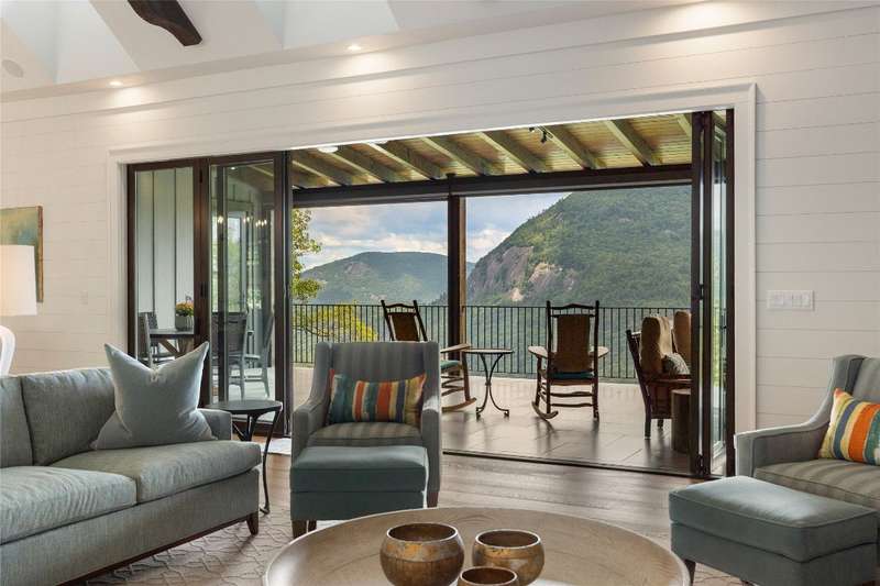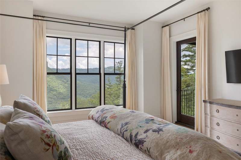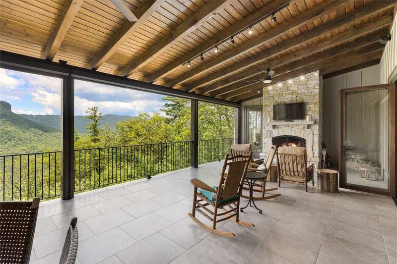 Perched at an elevation of 3,700 feet, behind the gates of Timber Ridge in the exquisite Chattooga Cliffs community, this masterfully appointed four-bedroom, four-and-a-half-bathroom residence offers refreshing summer breezes and sweeping, unobstructed vistas of Whiteside Mountain and Devil's Courthouse - an extraordinary backdrop for a life of refined mountain elegance blended with understated luxury. Encompassing 4.4 acres of verdant native flora and directly adjoining thousands of protected acres within the Nantahala National Forest, this home promises unparalleled privacy and natural splendor. From the generous, covered deck with a wood-burning stone fireplace - perfect for cool evenings under the stars - to the dramatic great room where soaring timber-beam ceilings, a grand stone fireplace, and full accordion glass doors invite the outdoors in, every detail of this property has been considered for both luxury and livability. The open-concept kitchen and dining space - equipped with high-end Thermador appliances, a generous island seating bar, and a butler's pantry - blend functionality with timeless sophistication, while the adjacent wet bar ensures seamless hosting. The main level of the property features a gracious primary suite with dual walk-in closets, a spa-inspired ensuite bathroom, and access to the deck, plus two additional guest suites, a half bathroom, a dedicated laundry room, and a welcoming foyer that sets a tone of quiet grandeur. The upper level includes a second primary suite - ideal for guests or multigenerational living. Located within the enclave of Chattooga Cliffs - just 2.5 miles from the heart of vibrant Cashiers - this property offers the tranquility of a secluded mountain retreat with immediate access to premier boutiques, restaurants, and cultural and recreation amenities in nearby Highlands as well as throughout Western North Carolina's Jackson and Macon counties. Offered fully furnished with tastefully curated pieces, this impeccably maintained turnkey residence presents a rare opportunity to step into a refined mountain lifestyle.