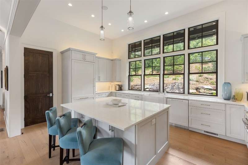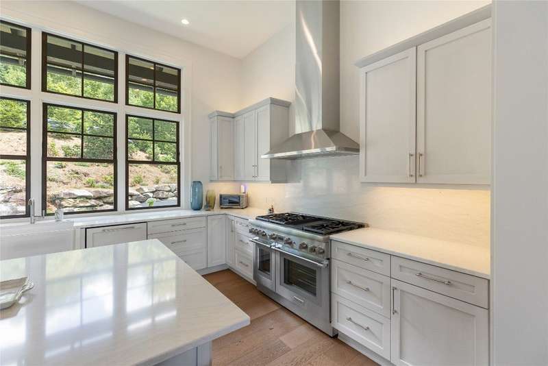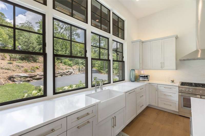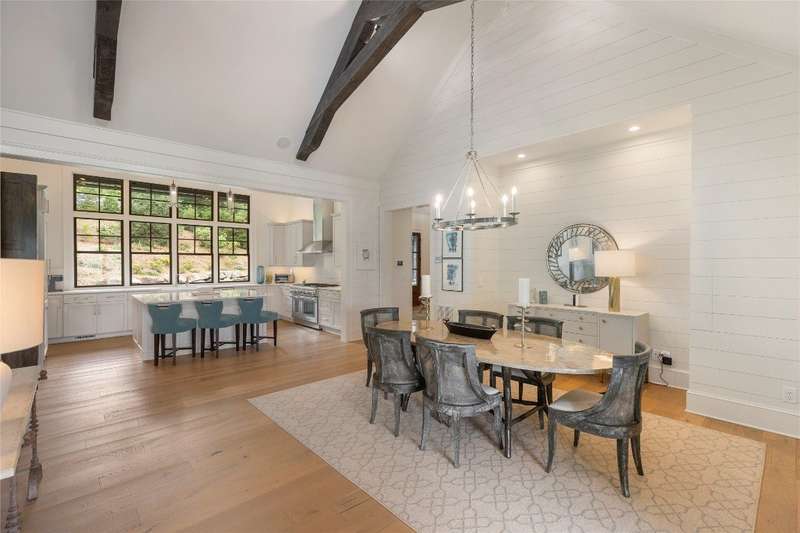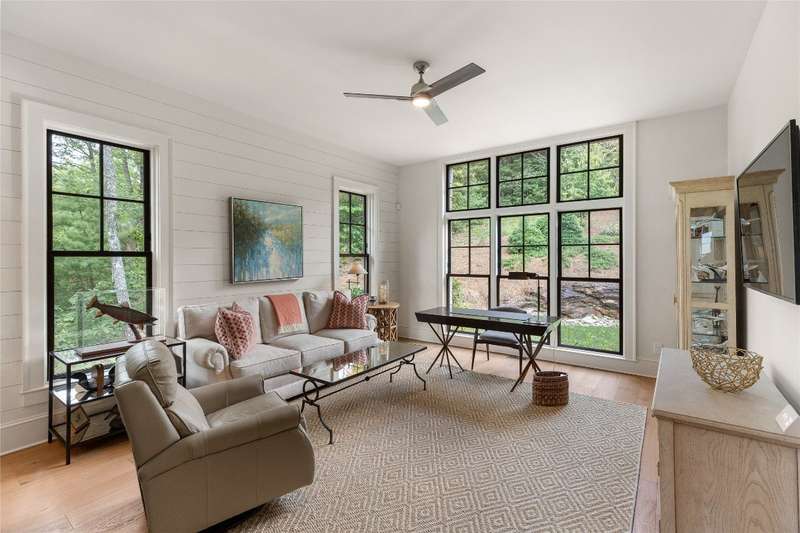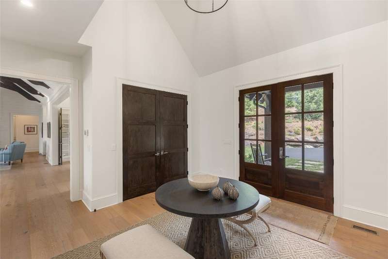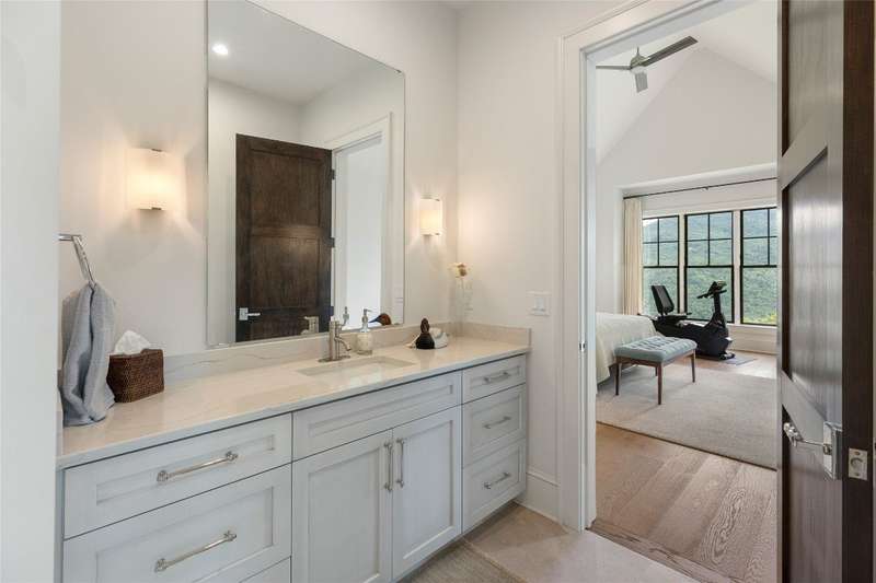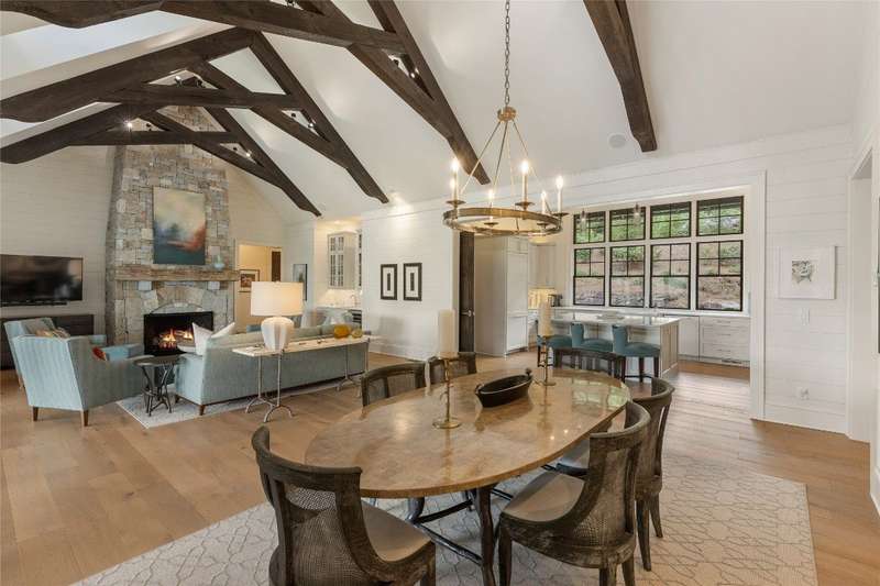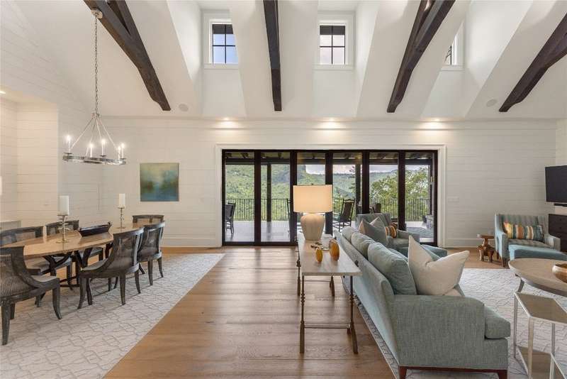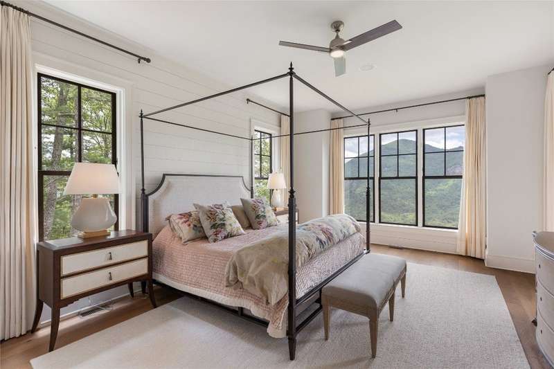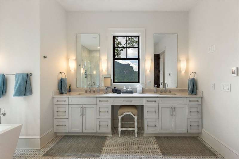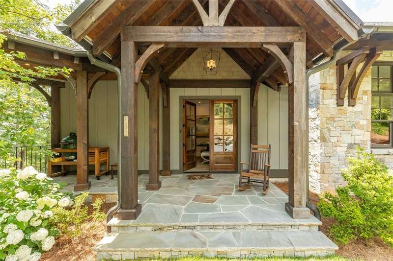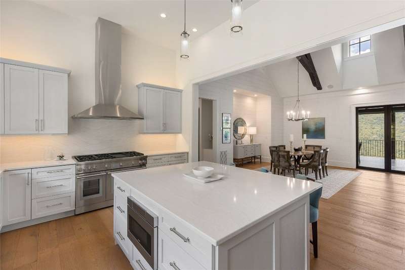 Perched at an elevation of 3,700 feet, behind the gates of Timber Ridge in the exquisite Chattooga Cliffs community, this masterfully appointed four-bedroom, four-and-a-half-bathroom residence offers refreshing summer breezes and sweeping, unobstructed vistas of Whiteside Mountain and Devil's Courthouse - an extraordinary backdrop for a life of refined mountain elegance blended with understated luxury. Encompassing 4.4 acres of verdant native flora and directly adjoining thousands of protected acres within the Nantahala National Forest, this home promises unparalleled privacy and natural splendor. From the generous, covered deck with a wood-burning stone fireplace - perfect for cool evenings under the stars - to the dramatic great room where soaring timber-beam ceilings, a grand stone fireplace, and full accordion glass doors invite the outdoors in, every detail of this property has been considered for both luxury and livability. The open-concept kitchen and dining space - equipped with high-end Thermador appliances, a generous island seating bar, and a butler's pantry - blend functionality with timeless sophistication, while the adjacent wet bar ensures seamless hosting. The main level of the property features a gracious primary suite with dual walk-in closets, a spa-inspired ensuite bathroom, and access to the deck, plus two additional guest suites, a half bathroom, a dedicated laundry room, and a welcoming foyer that sets a tone of quiet grandeur. The upper level includes a second primary suite - ideal for guests or multigenerational living. Located within the enclave of Chattooga Cliffs - just 2.5 miles from the heart of vibrant Cashiers - this property offers the tranquility of a secluded mountain retreat with immediate access to premier boutiques, restaurants, and cultural and recreation amenities in nearby Highlands as well as throughout Western North Carolina's Jackson and Macon counties. Offered fully furnished with tastefully curated pieces, this impeccably maintained turnkey residence presents a rare opportunity to step into a refined mountain lifestyle.