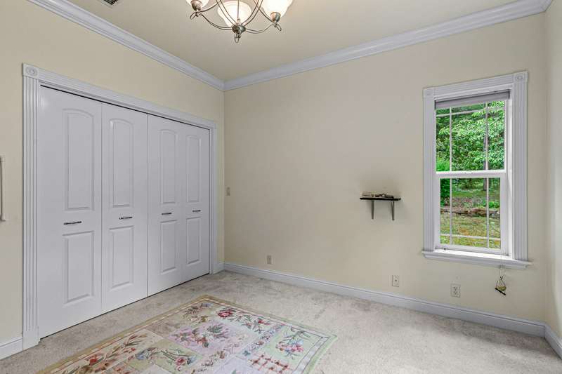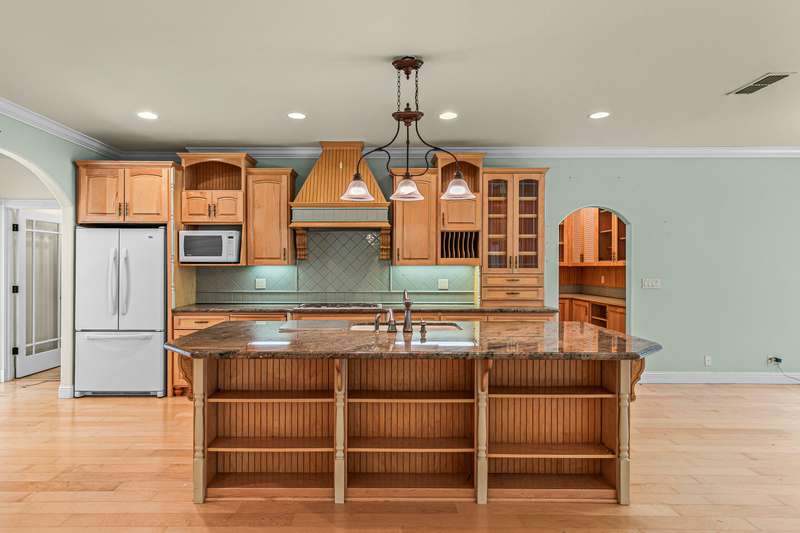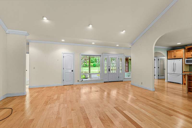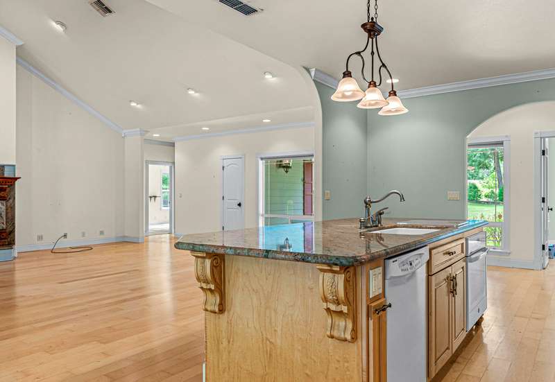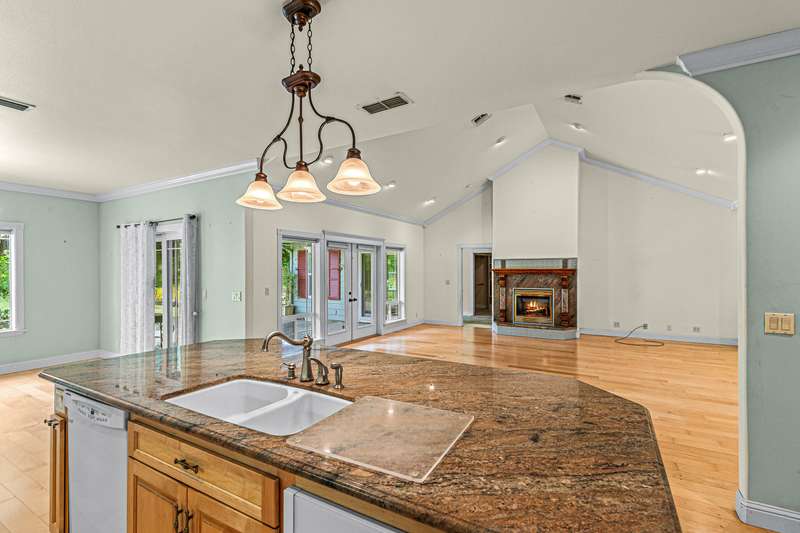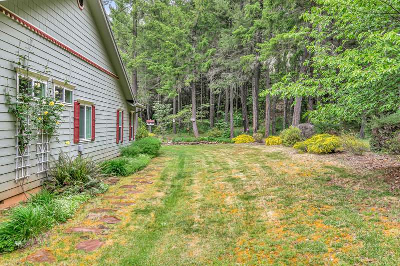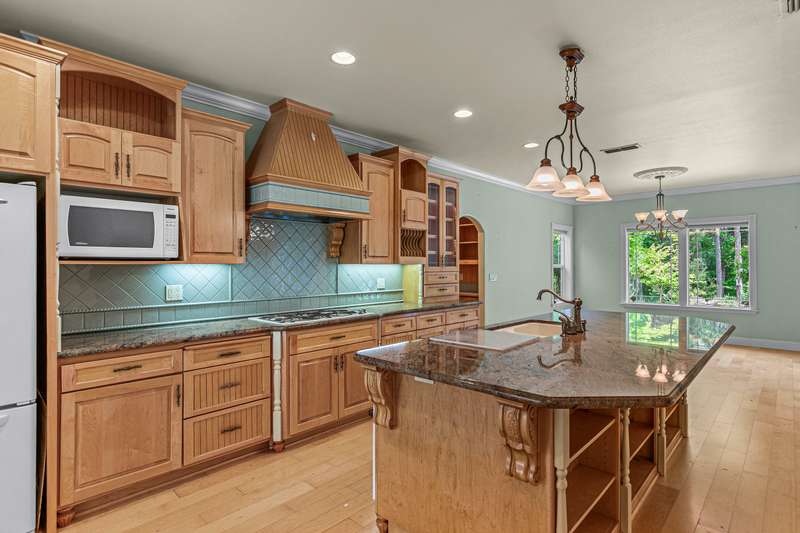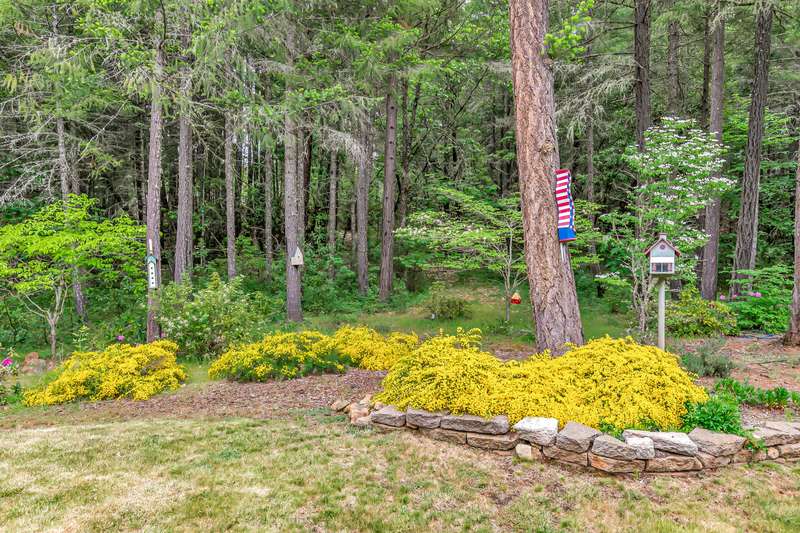 Discover the craftsmanship of Kirk Chapman in this 1-level home, featuring 3 bedrooms, 2 baths, and an office that could serve as an additional bedroom. Nestled in a tranquil neighborhood, this residence exudes charm and elegance. Inside, you are welcomed by a breathtaking kitchen that showcases artistic tile work and natural maple cabinets. The kitchen is equipped with a 5-burner propane stovetop. The bright and airy atmosphere is enhanced by the expansive granite island, which overlooks the great room, where the stunning granite is beautifully replicated in the fireplace surround. Adjacent to the kitchen, a walk-through butler's pantry not only offers attractive storage solutions but also provides convenient access to a half bath and a walk-through laundry room. The home features wide-board maple hardwood flooring, complemented by numerous windows that frame picturesque views of the beautifully landscaped yard and the surrounding forest. This is a gem that should not be missed!