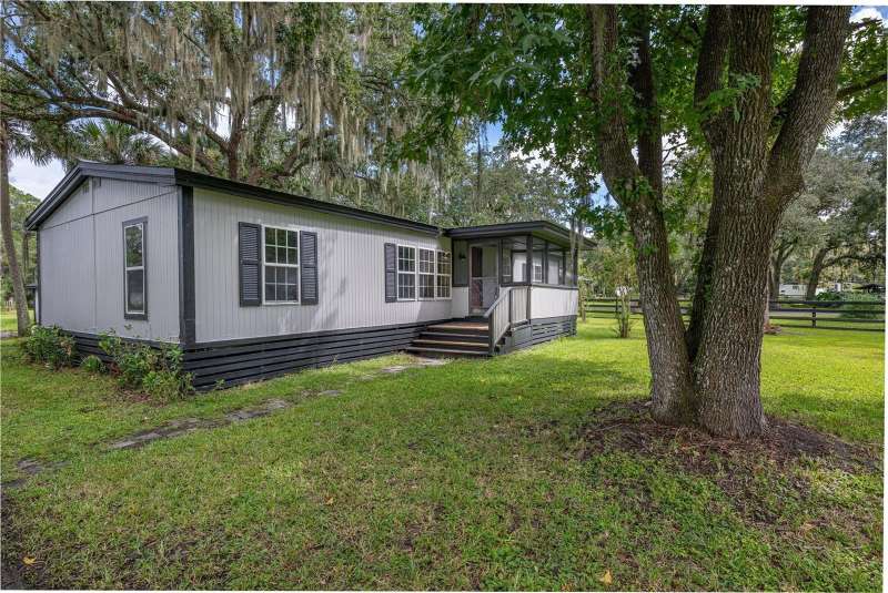 Welcome to this wonderful manufactured home situated on a full one acre of land. This residence offers 3 bedrooms and 2 full bathrooms, with a combination of laminate and tile flooring throughout, complemented by carpet in the two of the bedrooms. The interior is distinguished by walls constructed from genuine wood, adding warmth and character to the home. The property is fully fenced and includes an oversized detached two car garage providing ample storage and parking options. Outdoor living is enhanced with both a front and back porch, as well as a backyard pergola with swing creating a peaceful outdoor retreat. Bring your boats, RV's and other toys, this charming manufactured home offers plenty of space. Your perfect home awaits, schedule your private showing today.