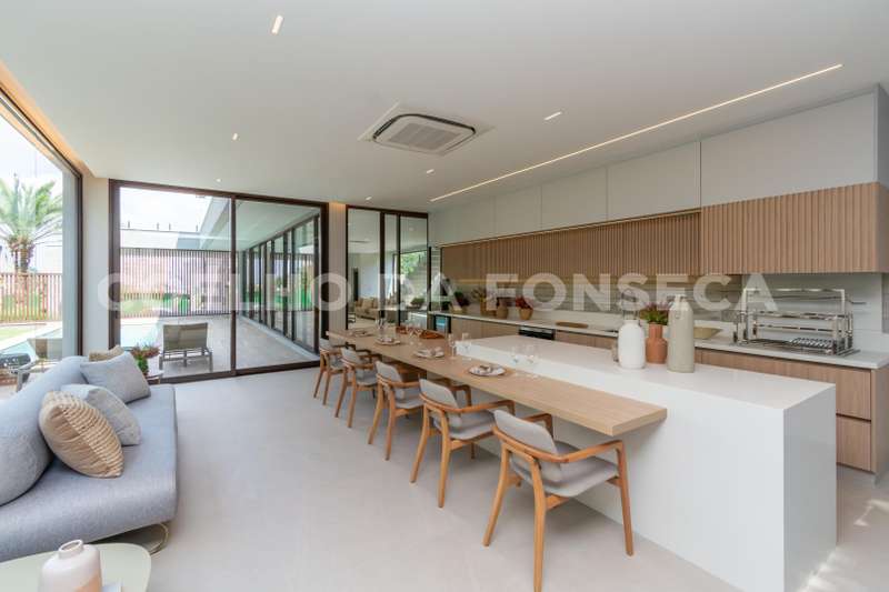 Com um design contemporâneo que impressiona à primeira vista, esta casa apresenta uma integração perfeita entre os ambientes, onde a sala ampla se conecta harmoniosamente com a área gourmet e a piscina, oferecendo uma vista espetacular que encanta em todas as direções.