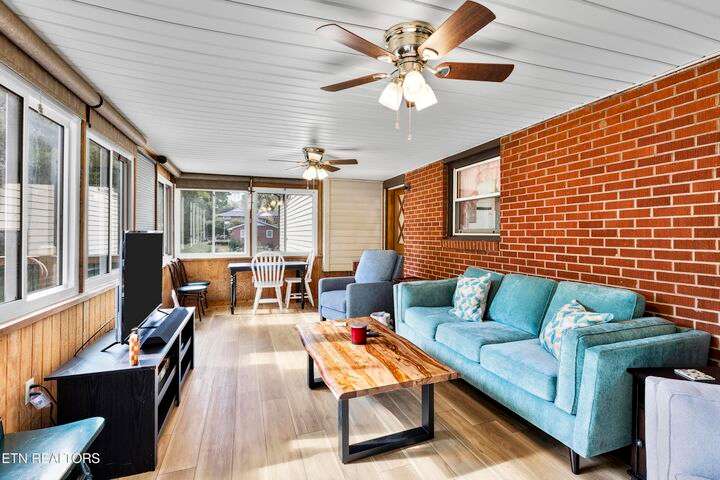 Older home in Fountain City offering 3 bedrooms/2 baths. There are beautiful hardwood floors in the living room and bedrooms. Big 24 x 12 Sunroom over-looking the back yard with a back deck. Downstairs has an office, laundry room and den. There is a large field across the street that the city keeps maintained.
