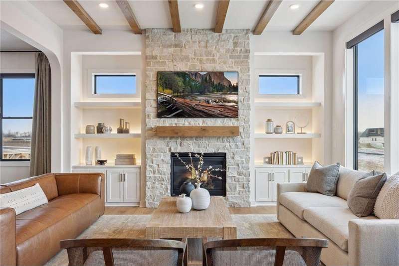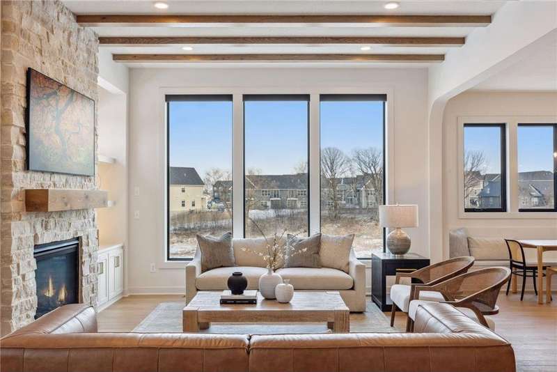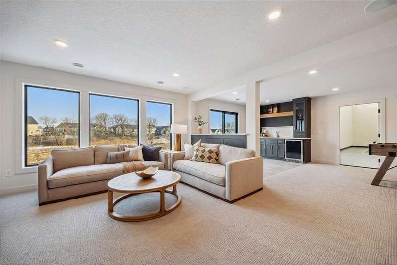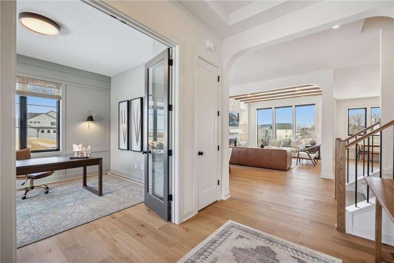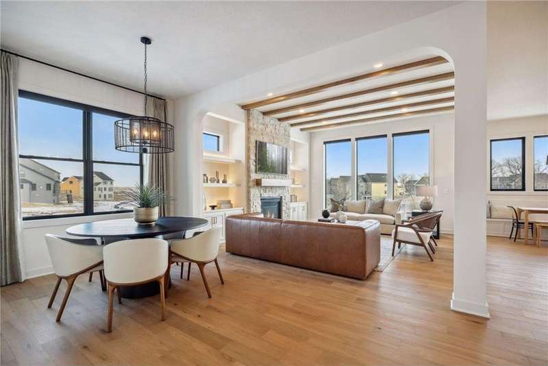 Discover ELWELL FARMS, a thoughtfully planned community spanning 515 acres and bordering the scenic Carlos Avery Wildlife Management Area. With 106 spacious acreage homesites, this stunning neighborhood blends natural surroundings with luxurious living. HANSON BUILDERS has 15 premium homesites available in Phase 1, many offering wooded landscapes and peaceful pond views. The BRIDGEWATER SPORT will be showcased in the upcoming Spring 2026 Parade of Homes. This exceptional home highlights the impeccable craftsmanship and design Hanson Builders is known for. The main level features soaring 10’ ceilings with rustic wood beam accents in the Great Room, while a 9.5’ center island anchors the gourmet kitchen, surrounded by custom cabinetry and a dinette area with built-in bench seating. A cozy sunroom invites relaxation with a floor-to-ceiling stone fireplace and wood beams, creating a warm and inviting retreat. Upstairs, you'll find a vaulted Bonus Room, four spacious bedrooms, and a luxurious Owner’s Suite complete with a spa-inspired bathroom and a convenient walk-through to the laundry room. The finished lower level is designed for both entertainment and function, offering an indoor Sport Center, family room, wet bar and game area, plus a fifth bedroom. The home also features a heated four-car garage with floor drains. Life at Elwell Farms includes access to a wide array of community amenities, such as a pool, clubhouse, playground with picnic pavilion, pickleball courts, a fishing pier, scenic trails, and more. Elwell Farms offers an unmatched lifestyle in a truly one of a kind setting.