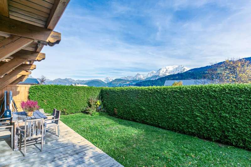 Superb, fully renovated flat ideally located in a small, well-maintained condominium in Demi-Quartier, close to the village of Megève and the Princesse ski lifts. This 80 m² apartment has an entrance hall with cupboards and separate toilet, a living room with fireplace, open kitchen and access to a large, private, south-facing 200 m² garden with magnificent views of the Mont Blanc range. At night, there are three double bedrooms, a shower room and a bathroom. An underground parking space in the condominium car park, a private outdoor parking space, a cellar and a ski locker complete this property.