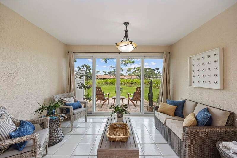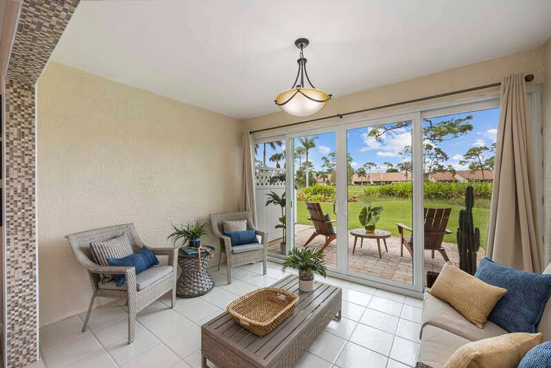 Welcome to Deerwood Villas at Lely Golf Estates, a Naples gem! This move-in-ready villa blends spacious elegance with low-maintenance living. Enjoy the unique enclosed private courtyard ideal for a garden retreat. An additional outdoor space includes a lovely open patio to enjoy the Florida wildlife and the 11th hole of Royal Palm Country Club. This villa is full of natural light! The open-concept great room boasts soaring ceilings and skylights. The chef's dream kitchen features ample counter space and a sunny eat-in area. Each of the 2 bedrooms features private bathrooms. Detached one-car garage. 2018 roof. Impact sliders on lanai. Roll down hurricane shutters on windows. Relax by the community pool steps from the villa with a brand-new deck, servicing only 20 villas. Ideally located minutes from downtown Naples, pristine beaches, shopping, and dining options.