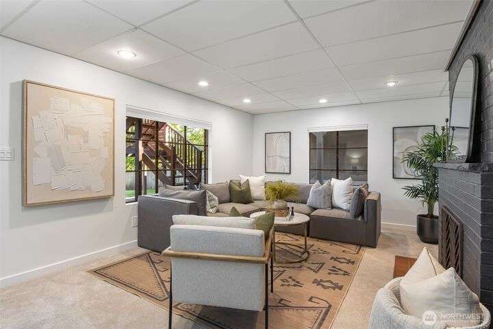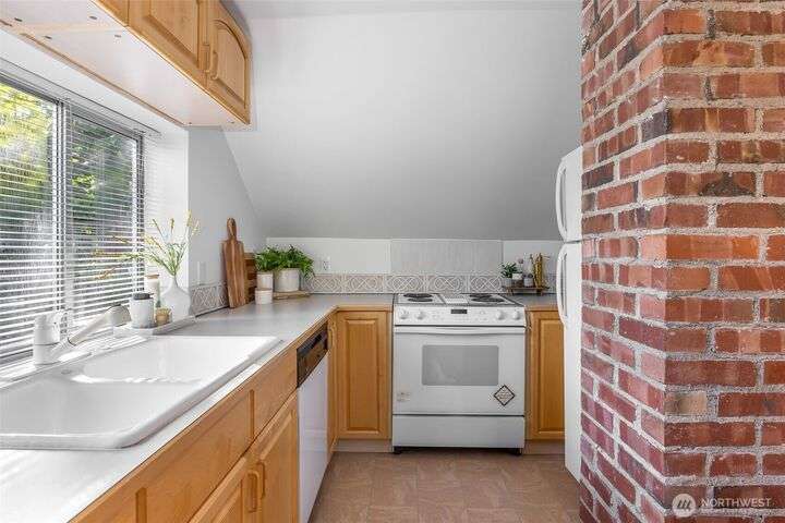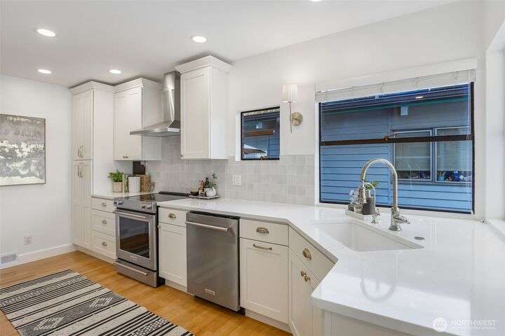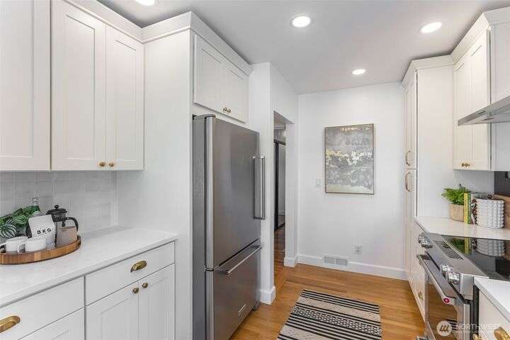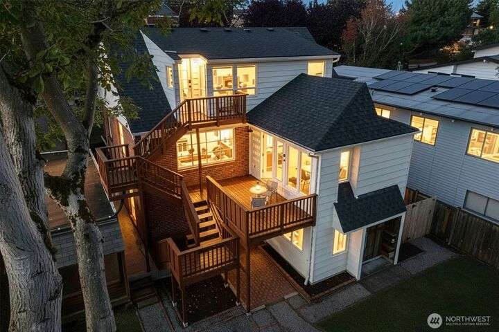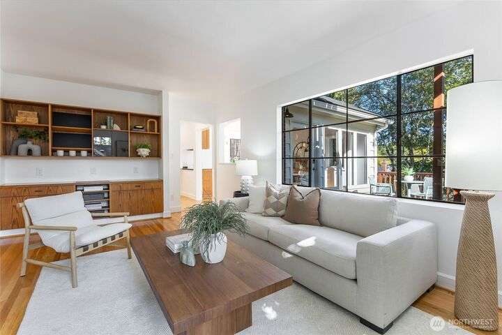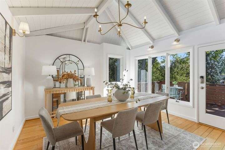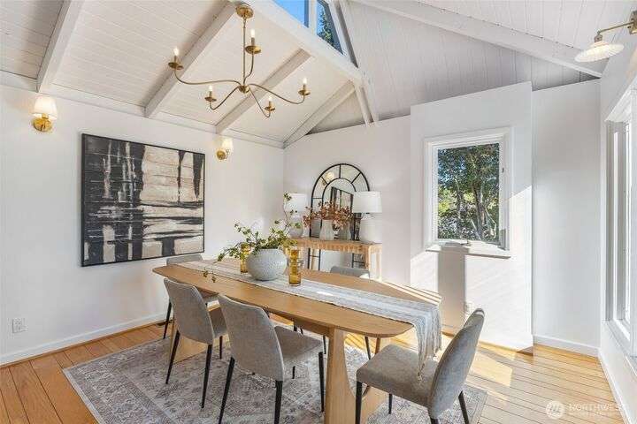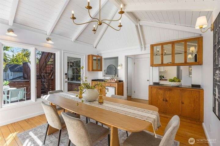Welcome to this beautifully updated 4-bed, 3-bath home in prime Bryant. The main level features a fully remodeled kitchen and bathroom, combining modern finishes with timeless style. The dining room’s vaulted ceilings create an elegant setting for entertaining and hosting memorable dinner parties. Natural light fills the home, enhancing its warm and inviting atmosphere. The private primary suite offers a peaceful retreat, while the spacious lower level provides versatile space to relax, play, or entertain. Outside, the expansive backyard feels magical—lush, private, and reminiscent of a storybook garden. Perfectly located steps from Met Market, U Village, UW, and Seattle Children’s, within the highly rated Bryant school district.