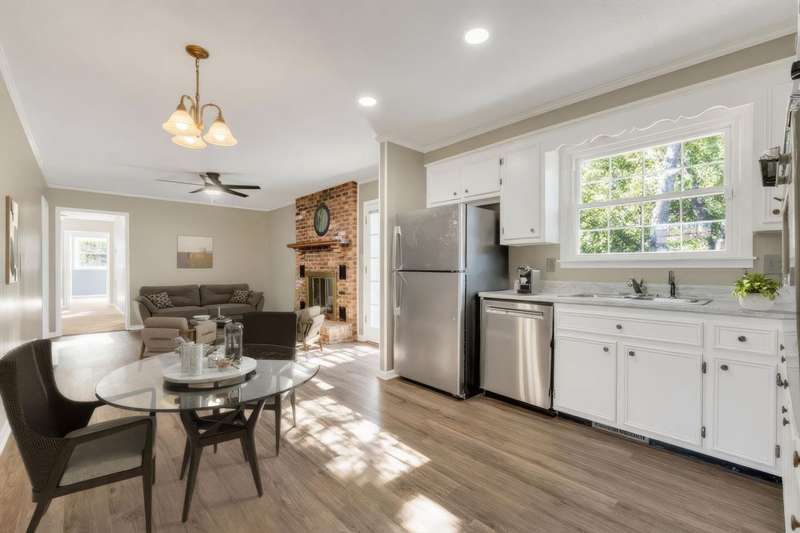 Remodeled ALL BRICK ranch with a NEW ROOF on a FINISHED BASEMENT with a 2 car garage located on a beautiful CORNER lot with lots of mature trees and 2 driveways. Great opportunity to own your first home with INCOME OPPORTUNITY or IN-LAW SUITE in the finished basement with it's own entrance, full set up kitchen, full bath, washer & dryer, living room with FIREPLACE, bedroom and office ( could make a 2nd bedroom ). The main level has 3 spacious bedrooms with 2 full baths, a huge living room, and a KEEPING ROOM with FIREPLACE room off the eat-in kitchen. New flooring thru-out with Tile floors in both baths, New lighting, SS fridge, SS dishwasher & New counters. Great outdoor living space on the COVERED front porch and HUGE 12X34 deck. Lots of storage upstairs in the 3x12 storage closet and in the basement with STORM SHELTER plus a STORAGE SHED. The basement is still under construction, the pictures will be updated next week when it is finished if it is still available.