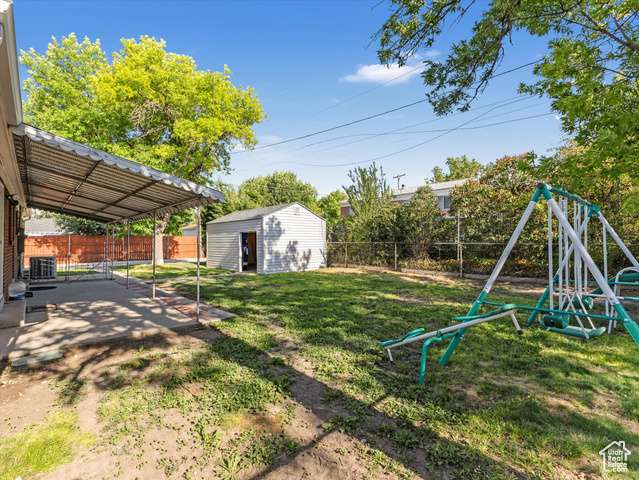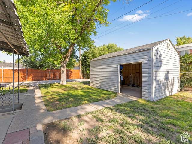 BACK ON THE MARKET, BUYER FAILED! RATES ARE DOWN, NOW'S THE TIME! This nicely updated and well-maintained rambler with attributes galore! Enjoy the covered rear patio and a fully fenced yard, large workshop/shed with 220V outlets and an expansive 90' x 23' parking pad for all the toys (also with RV dump station.) Home is freshly painted throughout, clean carpets (hardwoods underneath), new curtains, new LED lighting and fixtures throughout, updated bathroom, new roof (2018), hot water heater (2023), microwave (2025), smart thermostat, sealed kitchen and dining room floors, doors painted and hardware updated or replaced, some electronic locks. Vinyl windows and sliding door for energy efficiency, Vivint 5-camera system, fiber internet is already set up, multiple ceiling fans. Samsung washer/dryer stay. Garage includes extra length and 220V power. All info is deemed reliable; buyer to verify all to buyer's satisfaction. Square footage figures are provided as a courtesy estimate only and were obtained from County Records. Buyer is advised to obtain an independent measurement.