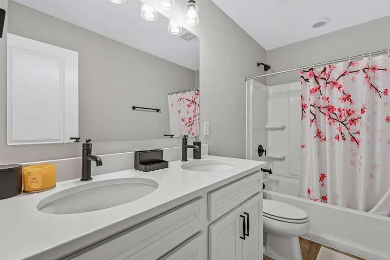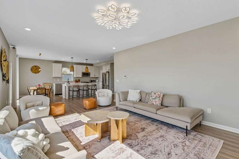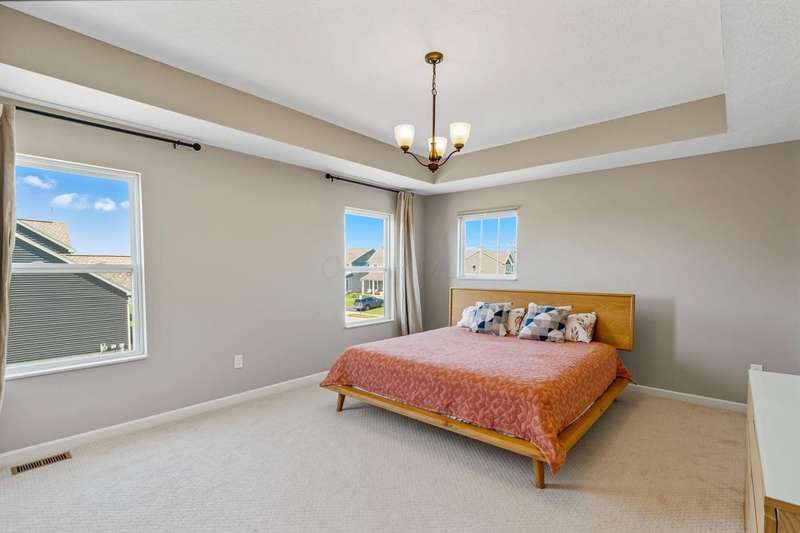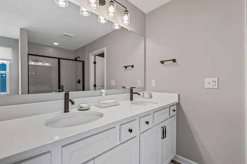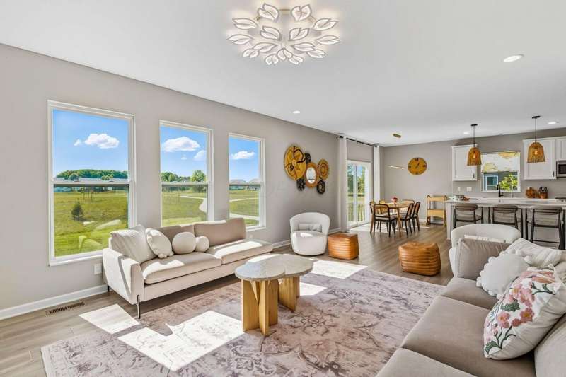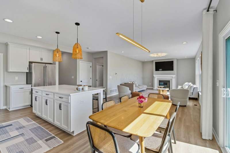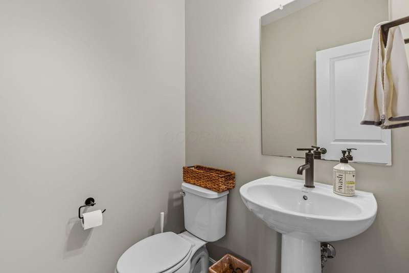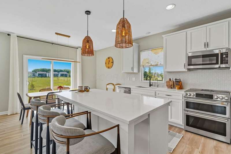 Better than new! Built in 2023, this 3BR/2.5BA home is situated on a NO OUTLET street and PREMIUM LOT with permanent, expansive greenspace for maximum privacy. This PRIME POWELL LOCATION is in the award winning Olentangy School District in Woodcrest Crossing. Designed with energy efficiency in mind! The craftsman elevation offers a beautiful, covered front porch with tapered columns and stone and shake shingle accents. Outside, enjoy the community walking/bike paths and exclusive access to the community swimming pool. Extensive upgrades include: custom appliances in the gourmet kitchen that features carrara marmi quartz counters, oversized island, upgraded cabinetry, hardware/faucets, tiled backsplash, coffee bar, and crown molding. Large walk in pantry with ample storage. The sun-dappled breakfast room opens to backyard via slider. First floor laundry with wash sink and first floor flex room/den/playroom/or office with french doors. Durable, impact resistant, and waterproof luxury vinyl plank flooring by Shaw completes the first floor living spaces. The family room is a perfect, sunlit entertaining space and is centered on a gas log fireplace. Upstairs features Portico Private Label carpeting. Expansive loft is a perfect playroom/movie/or lounge space and can be converted to a fourth bedroom as needed. Oversized owner's suite with tray ceiling is complemented by an upgraded en suite with dual vanity, tiled walk-in shower, and large closet. Full basement is well planned for easy finishing and includes plumbing for an additional full bath as needed. Garage has been equipped with 220v 30amp for charging needs. Fastidiously cared for and the definition of move in ready!