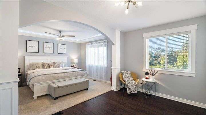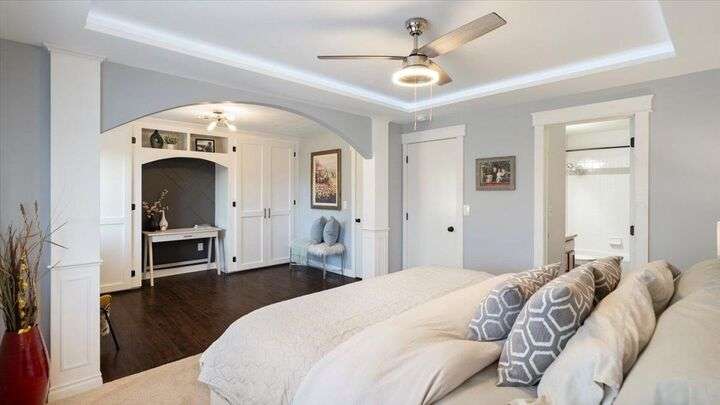 You won't want to miss this beautifully updated + impeccably maintained Central Valley rancher! Located at the end of a quiet cul-de-sac in gated Shelley Lake, the setting is serene yet it offers close, easy access to shopping, restaurants, schools + I90. Featuring main floor living w/an updated kitchen, complete w/hard surface counters + ss appliances, you will feel right at home from the moment you enter. Two main floor bedrooms have been combined to create a luxurious primary suite complete w/double closets + flex space that could be used as a home office, fitness area, nursery OR put the wall back in to add a 4th bedroom. The lower level is fully finished w/a wet bar, family room, sliding doors to a backyard patio + lots of natural light, perfect for multi-gen living. The fenced Garden of Eden backyard is overflowing w/fresh fruit like plums, pears, apples, grapes + raspberries, as well as designated garden beds, a play structure + storage shed. Newer roof, too!