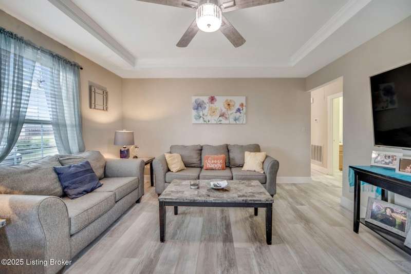 Welcome home to this beautiful move-in ready 2 bedroom, 1.5 bath condo with laundry hookups. Natural lighting abounds. The eat-in kitchen has newer stainless steel appliances that remain as well as access to a very private patio and courtyard out the back door, which also gives close access to your parking. The Primary bedroom has a large walk-in closet and there is also additional storage in the pull-down attic space in hallway. Out the front door is a beautiful shared courtyard with neighbors. Monthly maintenance fee includes water, trash, snow removal, grounds keeping, exterior maintenance, and master insurance. Goins Manor is close to shopping, grocery, restaurants, Jefferson Mall, Gene Snyder, and I-65. Schedule your showing today!