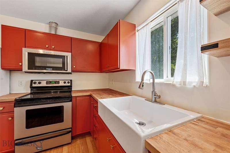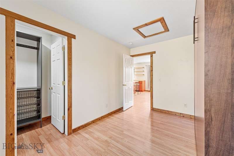 This is a great opportunity for an affordable 2-bedroom, 1-bathroom property, conveniently located between Four Corners and Gallatin Gateway. With only 16 units in the development, this stand-alone, energy efficient condo offers privacy with no walls or floors shared with another condo. All living areas are located on the upper level, with an open floor plan for the kitchen, dining and living areas, and two separate bedrooms with a shared bath. Other notable attributes include new windows in the bedrooms, butcher block counter tops, farmhouse sink, south-facing windows, and central air conditioning. The heated 800sf garage off the entry split level has been upgraded with a 50-amp receptacle that is split phase for either 120 or 240V and has been plumbed for a toilet and sink. There is an acre common park area with pergola at the center of the development and nearby is a paved trail to Gallatin Gateway amenities and services. Some photos have been virtually staged.
