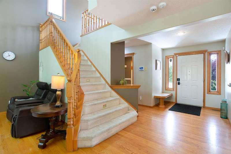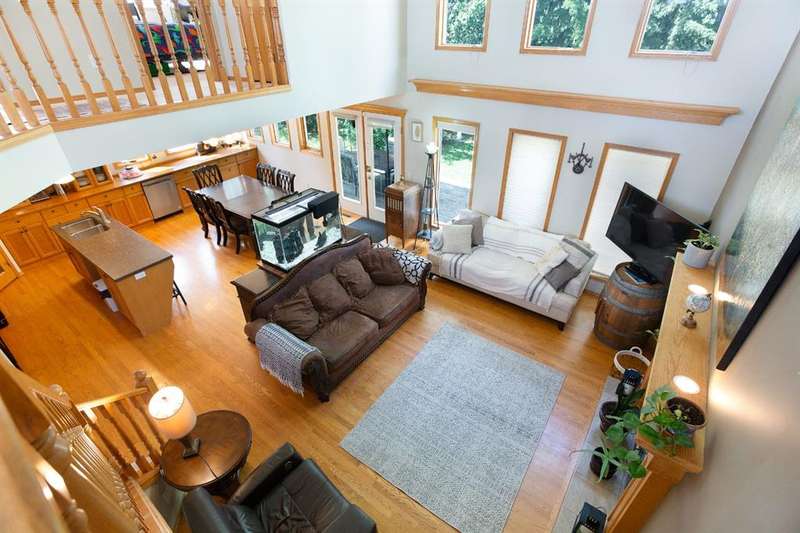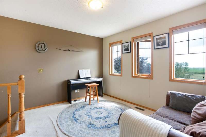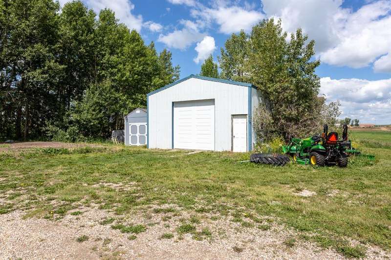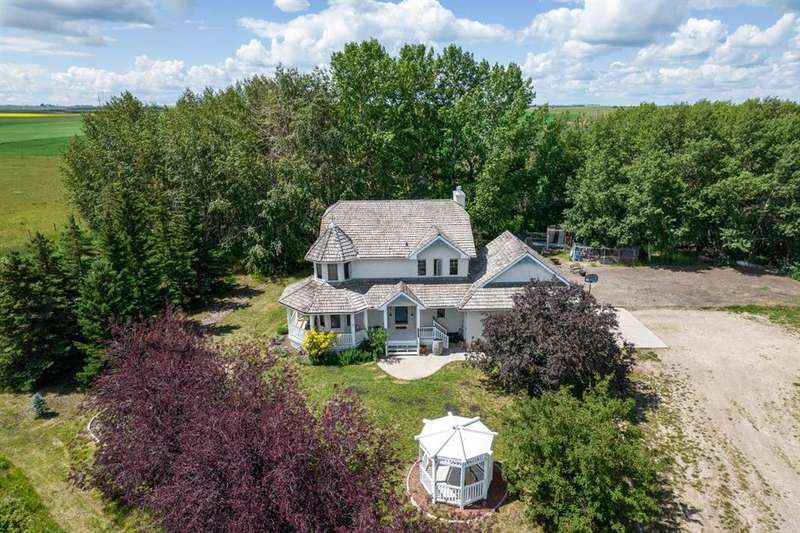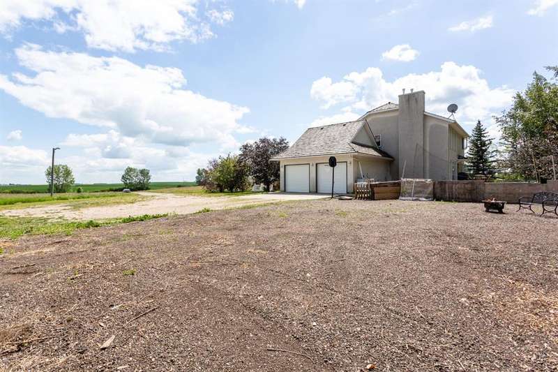 Welcome to this beautifully maintained farmstead acreage offering the perfect blend of country charm and modern comfort. Nestled on a sprawling 6.72-acre lot, this 1,885.67 sq ft residential home provides peaceful, private living just minutes from city conveniences. Step inside to discover a spacious main floor featuring a cozy living room, dining area, and a well-appointed kitchen—perfect for family gatherings. A main floor bedroom and 3-piece bathroom add convenience and flexibility for guests or single-level living. Upstairs, you'll find a 4-piece bathroom and two well-sized bedrooms, including a primary suite with a walk-in closet. A smaller bonus room upstairs offers a great space for a kids’ study area, reading nook, or games room. The fully developed basement features a 3-piece bathroom, a large recreation room, and two generous rooms ideal for home offices, flex rooms, or personal hobbies—one of which is currently set up as a gym. Outside, enjoy the peaceful setting from your private deck, surrounded by mature trees. The landscaped yard includes a large grassed area, ample RV and vehicle parking, and a garage to store your equipment or vehicles wth a large shop with a cement pad and overhead heating. This property is perfect for those seeking space, privacy, and the beauty of rural living. Don’t miss this rare opportunity to own a slice of country paradise!