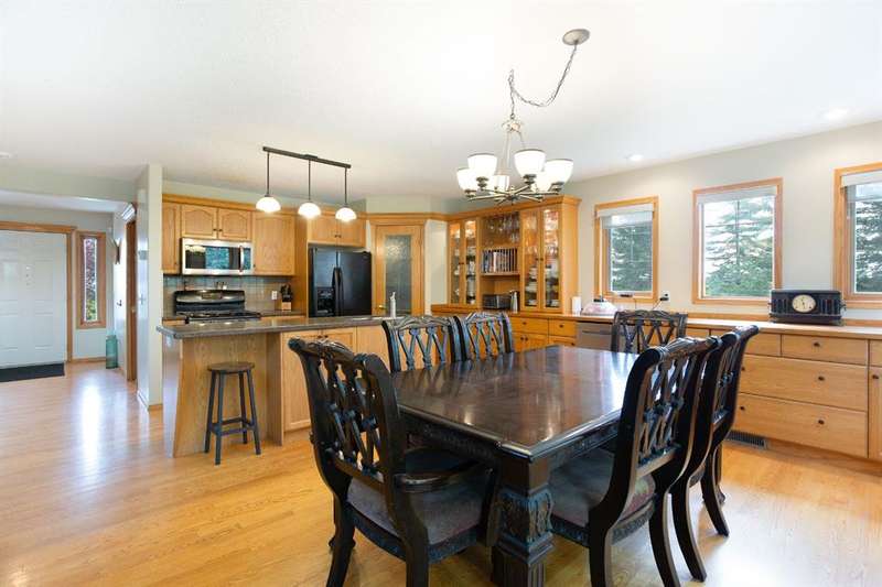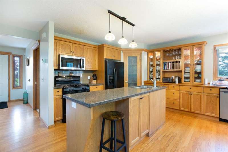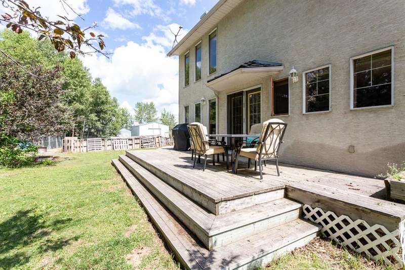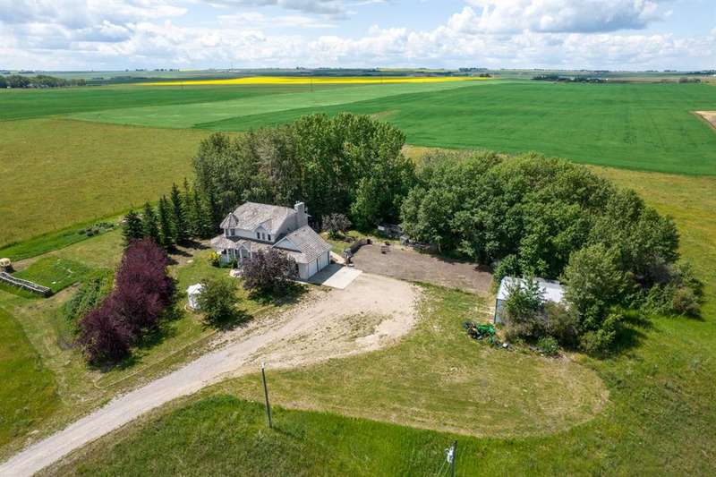 Welcome to this beautifully maintained farmstead acreage offering the perfect blend of country charm and modern comfort. Nestled on a sprawling 6.72-acre lot, this 1,885.67 sq ft residential home provides peaceful, private living just minutes from city conveniences. Step inside to discover a spacious main floor featuring a cozy living room, dining area, and a well-appointed kitchen—perfect for family gatherings. A main floor bedroom and 3-piece bathroom add convenience and flexibility for guests or single-level living. Upstairs, you'll find a 4-piece bathroom and two well-sized bedrooms, including a primary suite with a walk-in closet. A smaller bonus room upstairs offers a great space for a kids’ study area, reading nook, or games room. The fully developed basement features a 3-piece bathroom, a large recreation room, and two generous rooms ideal for home offices, flex rooms, or personal hobbies—one of which is currently set up as a gym. Outside, enjoy the peaceful setting from your private deck, surrounded by mature trees. The landscaped yard includes a large grassed area, ample RV and vehicle parking, and a garage to store your equipment or vehicles wth a large shop with a cement pad and overhead heating. This property is perfect for those seeking space, privacy, and the beauty of rural living. Don’t miss this rare opportunity to own a slice of country paradise!