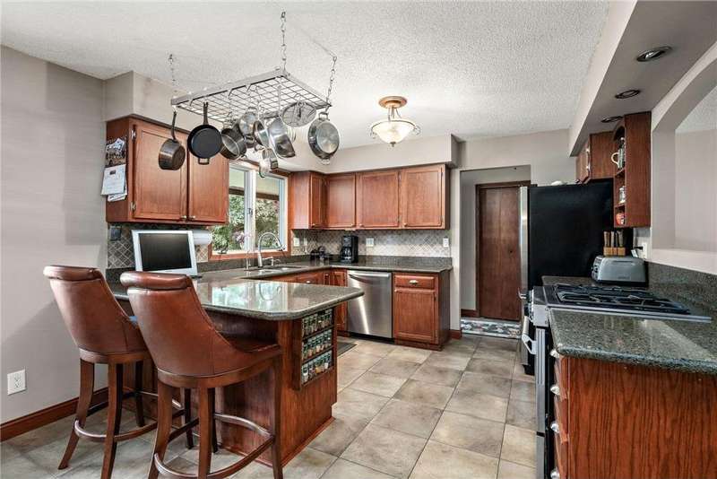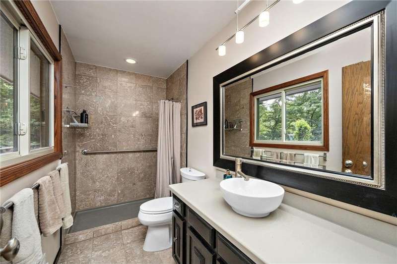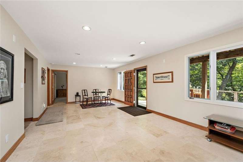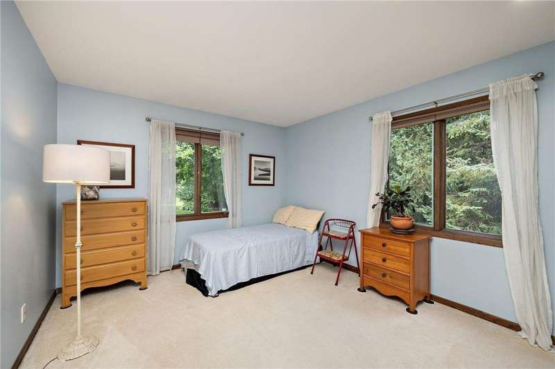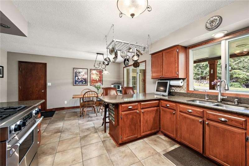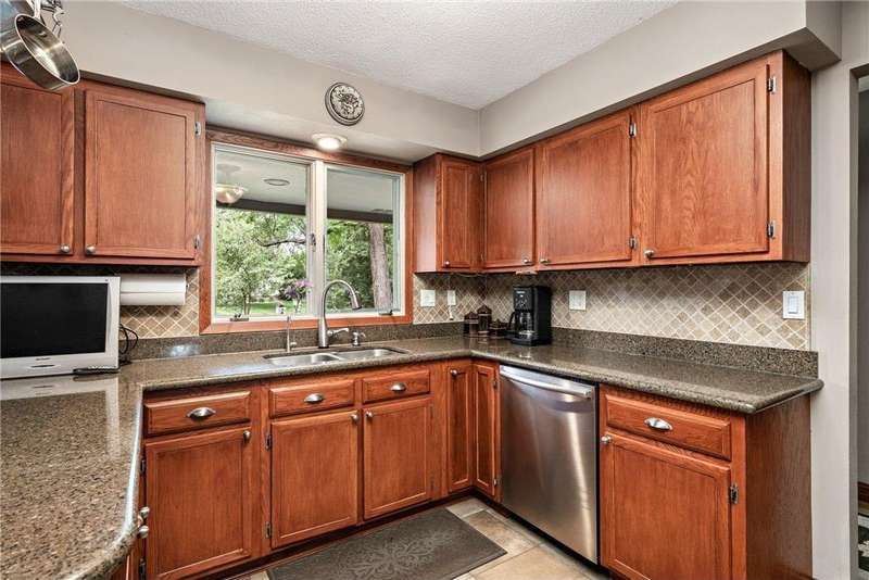 Meticulously maintained Eden Prairie walkout rambler, situated on an amazing 1 acre lot with city convenience and country privacy. Casual style open floor plan with 3 bedrooms on the main level. Kitchen boasts a breakfast bar, Silestone counters, tile floor, 9' ceiling and walkout to deck. Oversized 2 car garage on top, full garage underneath with single door - great work shop. Private well for irrigation.