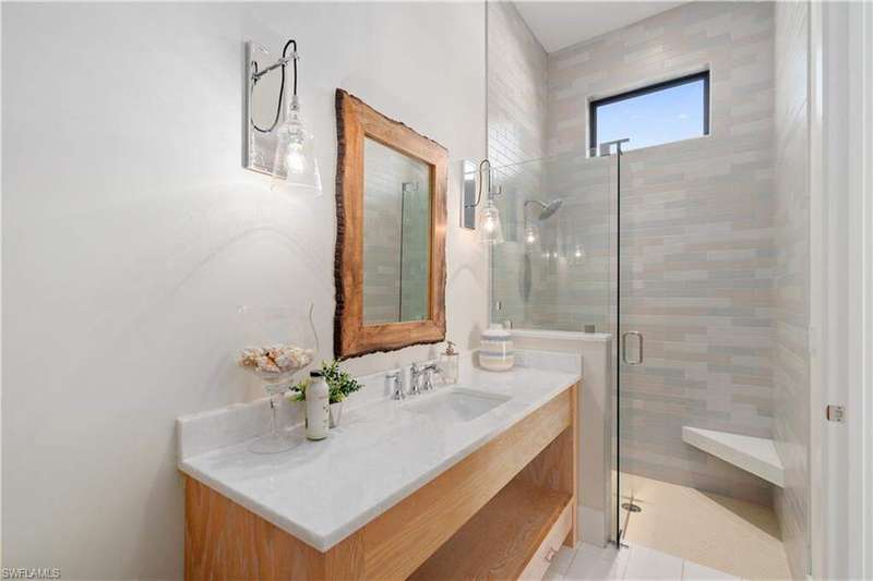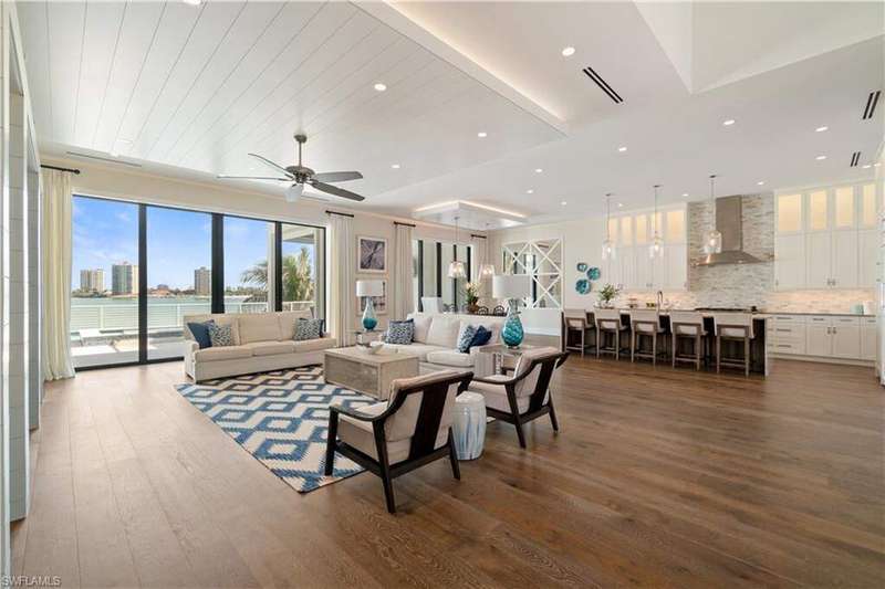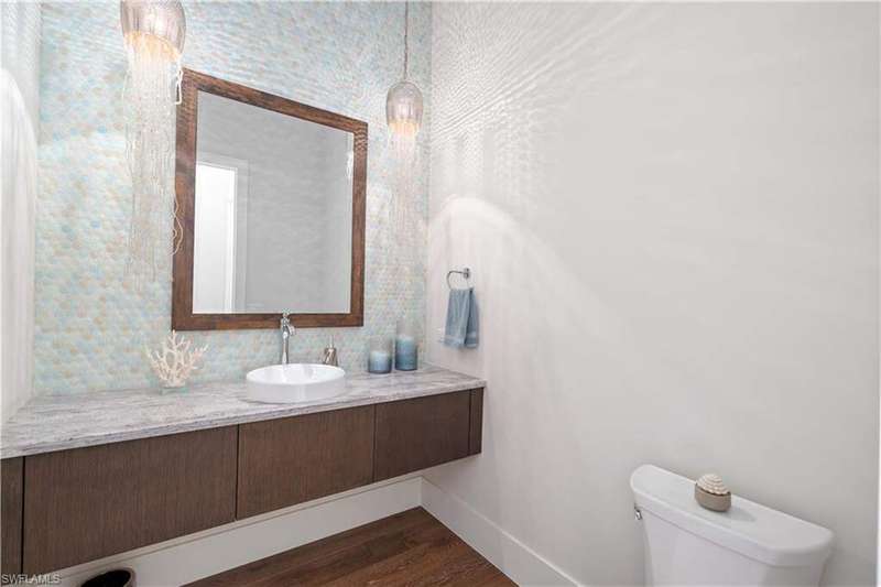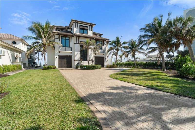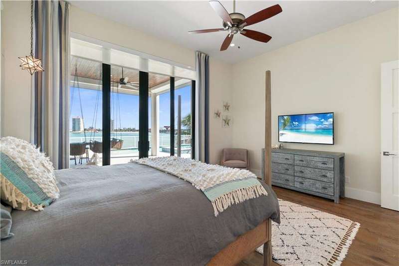 Exceptional 2019-built masterpiece on the coveted South end of Estero Island. Offering some of the most expansive and breathtaking bay views the island has to offer, this residence is the epitome of coastal luxury living. A haven for boating enthusiasts, it boasts direct access to the Gulf with just a two-minute boat ride. The property features a private dock, a 12,000 lb boat lift that previously accommodated a 40-foot boat, and a jet ski lift. Located just a 7-minute (0.3-mile) stroll from deeded beach access exclusive to a limited number of South end bayside residents, this home is perfectly positioned for both beach and boat lovers. No details were overlooked while meticulously crafting this architectural marvel, from beautiful oak flooring to inverted tray ceilings with custom lighting. Inside, the expansive open layout includes 4 spacious bedrooms, 4 full bathrooms, 2 half-baths, dual laundries, and a garage that has ample space for 6+ cars. Step outside to your own backyard oasis, where an expansive pool deck awaits, featuring an elevated pool with a sun shelf, spa, a fireplace, a summer kitchen, a pool bath, and a bar area with swinging chairs and seating - perfect for entertaining or relaxing. The gourmet chef's kitchen is equipped with high-end granite waterfall countertops, sleek white cabinetry, premium Jenn-Air appliances, and a butler's pantry. The luxurious primary suite offers sweeping Bay views, a private lanai, dual walk-in closets, and a spa-like bathroom with dual vanities, a freestanding tub, and a shower with multiple shower heads for ultimate relaxation. Additional features include a whole-house filtration system, a 500 lb buried propane tank, a private elevator, hurricane impact windows and sliders, electric storm shutters, interior electric screens, a Lutron lighting system, and a surround sound system. Prime location on a peaceful stretch of South Estero Island close to many fantastic restaurants and easy access to Lovers Key/Bonita Beach. This is the pinnacle of waterfront living.