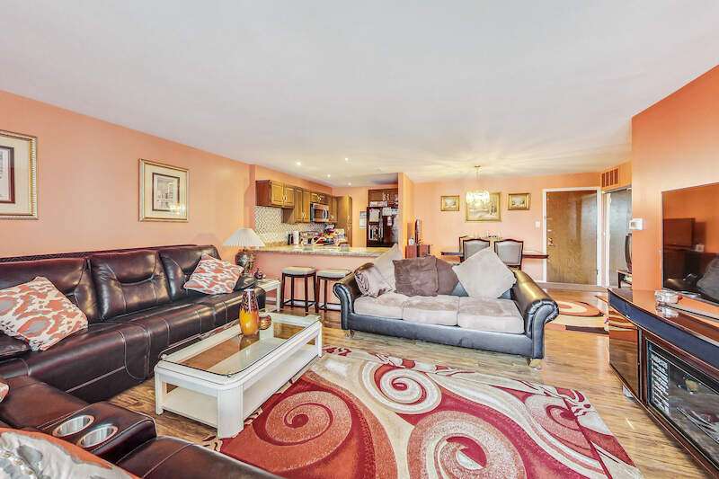 This conveniently located 2 bed, 2 bath condo is right next to a golf course and is available for your buying pleasure. This unit features an open concept living space with a balcony to sit and enjoy your morning coffee or watch the sunset. The primary bedroom includes a large walk in closet and a ensuite bathroom. The 2nd bedroom is also a great size. The Laundry facility is located on the same floor as the unit. You also will have covered, garage parking that is perfect for inclination weather and bringing in your groceries.