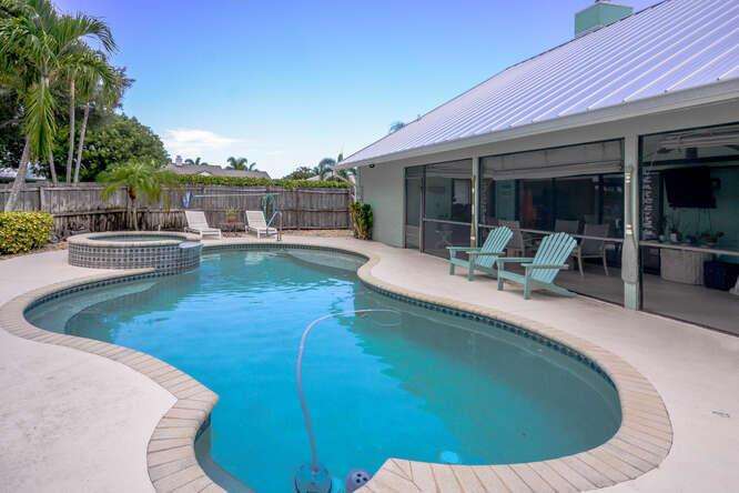 ? HOT SUMMER BUY in Tequesta Pines! ?Don't miss this incredible opportunity to own a spacious 3 bed / 2.5 bath single-story split floor plan home that has it all -- and then some!Step inside to find soaring ceilings and a wall of sliding glass doors that flood the living space with natural light and lead out to a screen-enclosed patio and open pool area, perfect for relaxing or entertaining. The kitchen offers plenty of storage and counter space, a breakfast bar, and views of the patio -- making it the heart of the home for gatherings and everyday living. The oversized primary suite features a large ensuite bath that also functions as a convenient cabana bath with direct access to the pool.Enjoy peace of mind with new roof, A/C, and pool equipment -- all less than 2 ye