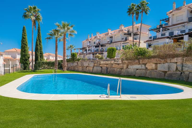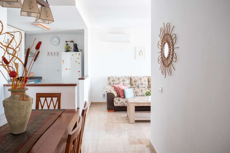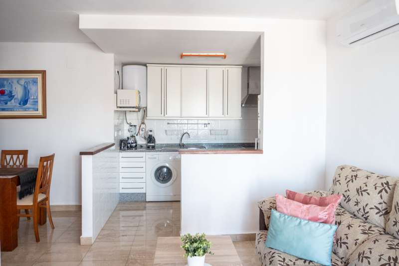 Discover Your New Home in Vistalmar Duquesa Sur! Live by the sea in an exclusive private development with spectacular views of both the sea and the mountains. This bright 2-bedroom, 2-bathroom home (including one en-suite) offers all the comfort you need in a peaceful, well-connected setting. The interior features a modern open-plan layout that seamlessly combines the kitchen, living, and dining areas, creating a spacious and functional living space. The property is sold fully furnished and equipped, with built-in wardrobes, PVC windows with Climalit double glazing, and split hot and cold air conditioning in every room. Outside, enjoy a private front porch with garden furniture and a barbecue area — perfect for outdoor gatherings. The home is located within a gated community with private access, offering three communal swimming pools and shared spaces with unbeatable views in an unbeatable location: Vistalmar Duquesa Sur is just steps away from La Chullera Beach and only minutes from