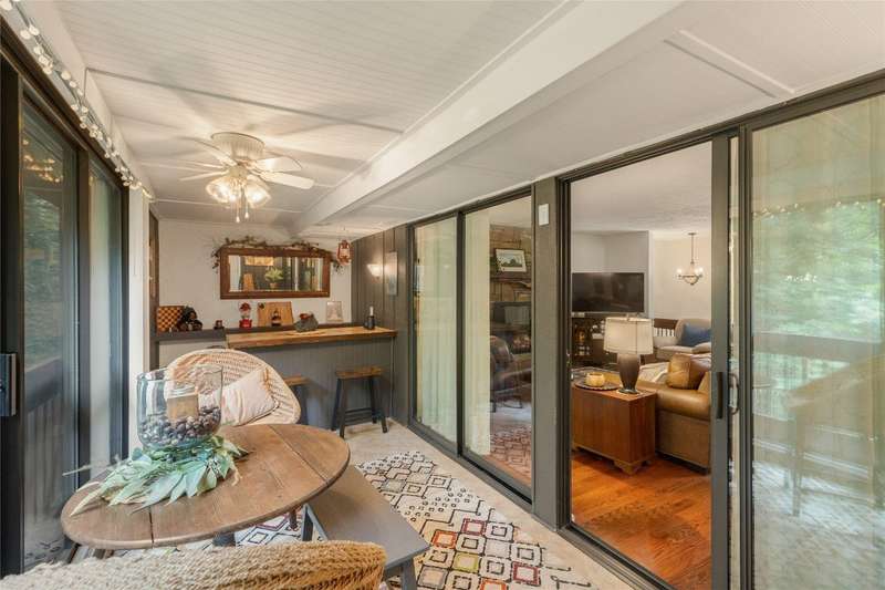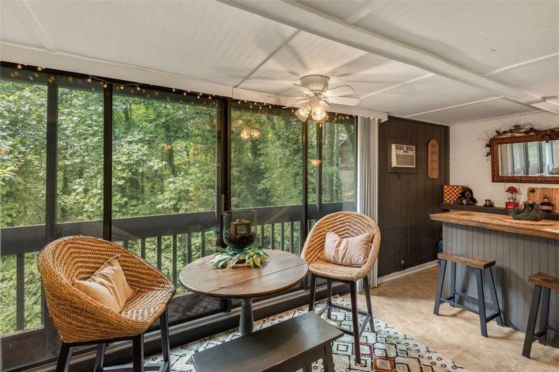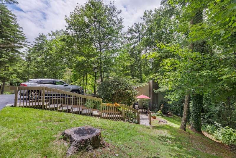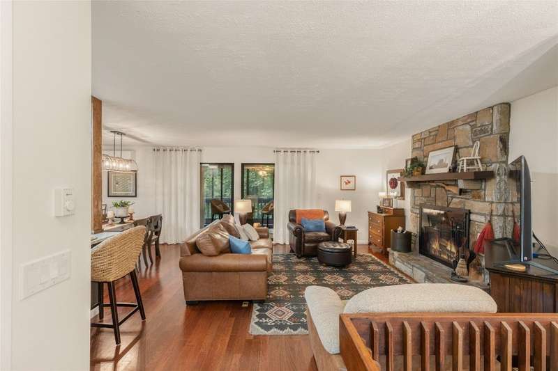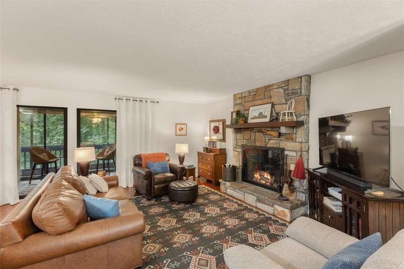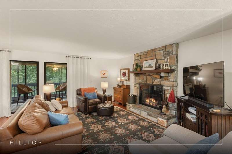 Nestled in Sapphire Valley's Hilltop community, this rare end-unit offers expanded interior space, outdoor charm, and a long list of thoughtful updates. Unlike most units, this residence features enclosed upper and lower levels, creating additional square footage. The main level boasts an updated kitchen with granite countertops and appliances, a custom glass fireplace door, and a minisplit system added in the last six months for efficient year-round comfort. The lower level has two bedrooms with brand-new carpeting and opens to a private side yard with stone steps leading to an outdoor entertaining area - a feature unique to this home. Additional improvements of the last six months include new upstairs sliding glass doors, a repaired lower slider, and fresh exterior stucco work around the chimney. Residents enjoy year-round Sapphire Valley Resort amenities, including heated pools, tennis courts, pickleball courts, a fitness center, a dog park, minigolf facilities, a nine-hole golf course, and Fairfield Lake for swimming and boating. Winter fun abounds with skiing, snow tubing, and snowboarding. Just minutes from Cashiers' charming shops and dining establishments, Sapphire Valley offers the perfect combination of adventure, leisure, and convenience. Whether seeking a weekend retreat, a seasonal escape, or a full-time residence, this turnkey-ready home delivers mountain living with comfort and style.