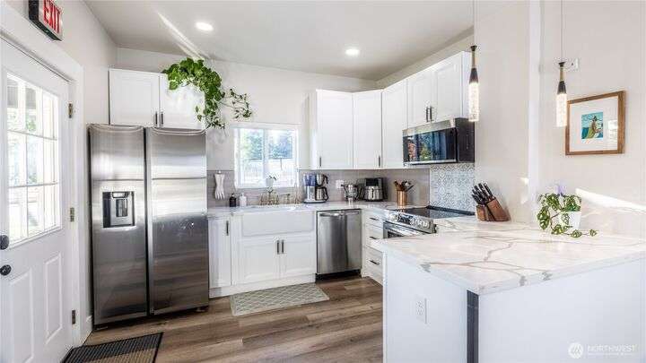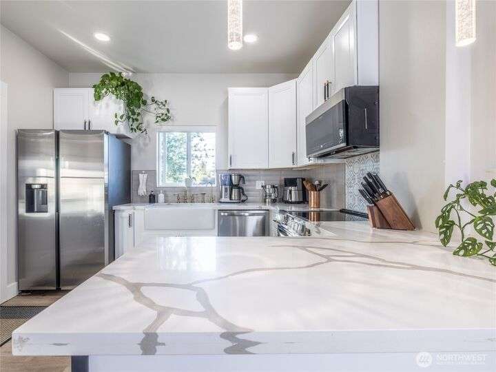 Own a piece of local history—the 1908 Mattson Farmhouse—set on a private, level acre between Mattson Middle School and quiet PSE land for rare seclusion. No HOA and plenty of space for trucks, RVs, or small-business gear. Fully renovated (~2023) yet rich with character: 9-ft ceilings on the main, a sun-filled great room, and an updated kitchen made for gatherings. Relax in the main-floor primary suite with spa shower, 3 oversized tubs, and a walk-in closet. 3-bedroom with two additional flexible rooms for office, play, studio, or guests. Entertain on the huge deck with a hot tub, plus greenhouse and outbuilding/shop. Minutes to Covington Town Center, Costco, dining, and parks, with easy drives to Issaquah (~25 min) and Seattle (~40 min).