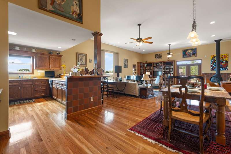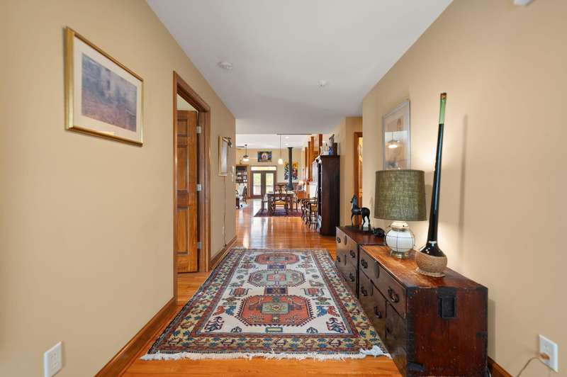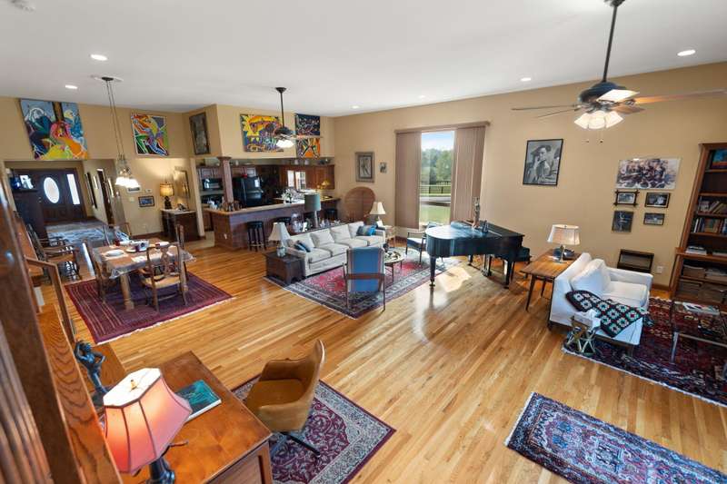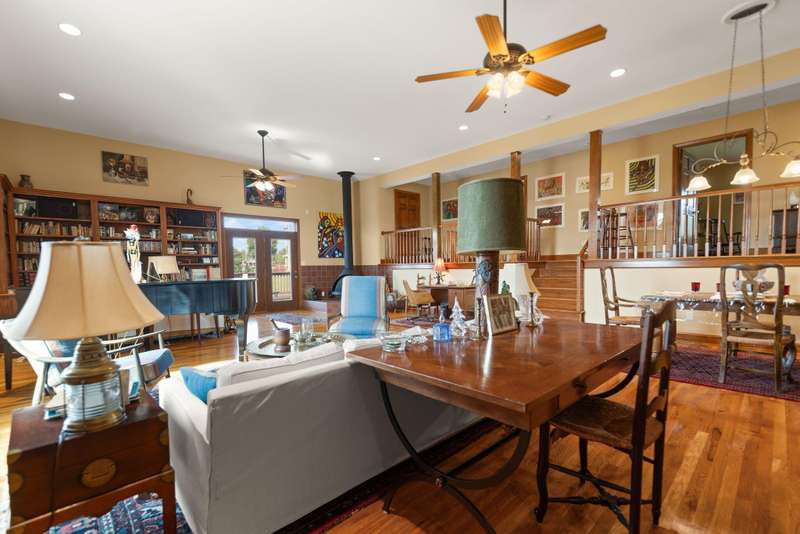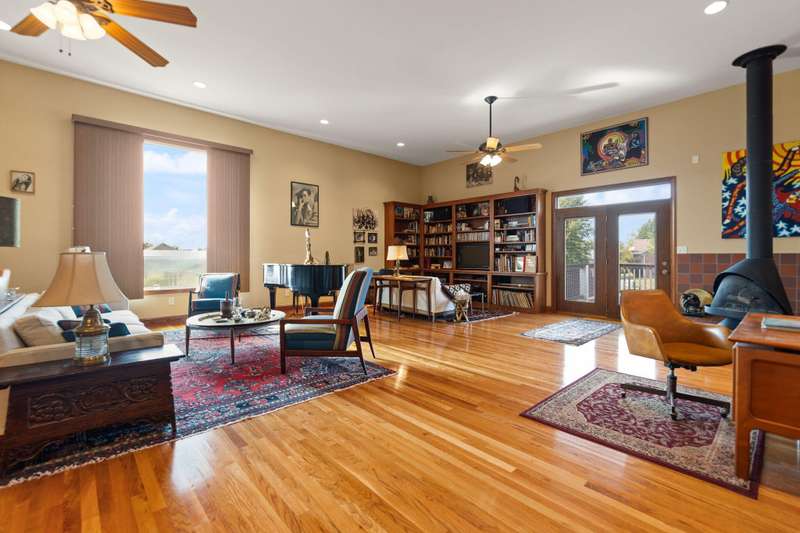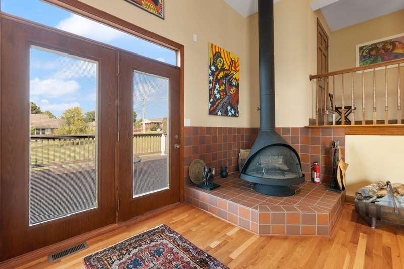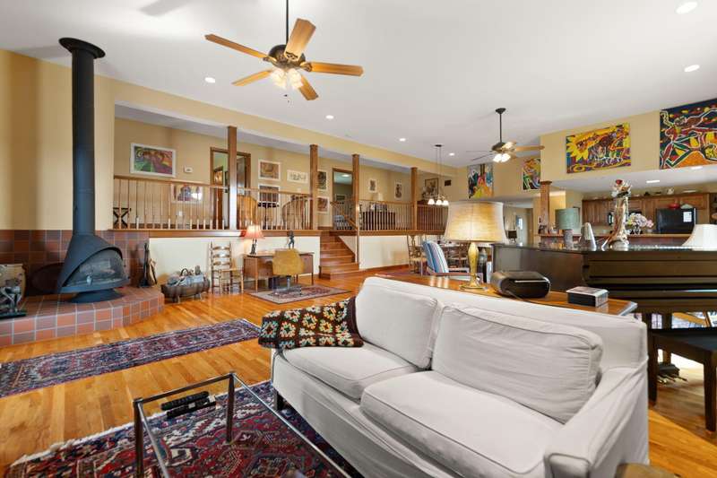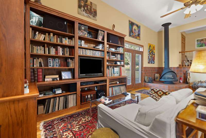 This custom-built residence effortlessly blends mid century modern charm with timeless sophistication. Unique, spacious, and refined, it offers the perfect setting for both everyday living and memorable gatherings. Step into the welcoming foyer, where gleaming hardwood floors guide you into a grand living area and kitchen. The open-concept design is ideal for entertaining or unwinding, with a cozy wood-burning chiminea as its centerpiece. The kitchen is both stylish and functional, featuring a genuine built-in butcher block alongside generous counter space. The expansive living room boasts soaring ceilings and custom built-in bookshelves, creating a striking yet inviting atmosphere. The oversized primary suite is a true retreat, complete with a walk-in closet, spa-like bath with soaking tub and separate shower, an oasis of comfort and relaxation. Two additional bedrooms are equally impressive in size, connected by a convenient Jack-and-Jill bathroom and offering ample closet space. Every detail of this remarkable home reflects thoughtful design and enduring character. Overflowing with charm, it's more than a property ~ it's a lifestyle. Simply put, this is a must-see gem.