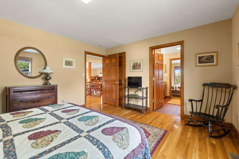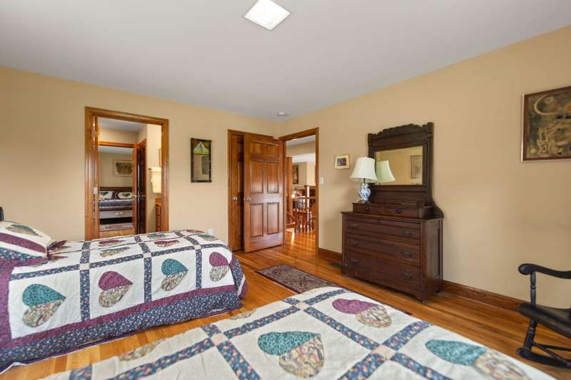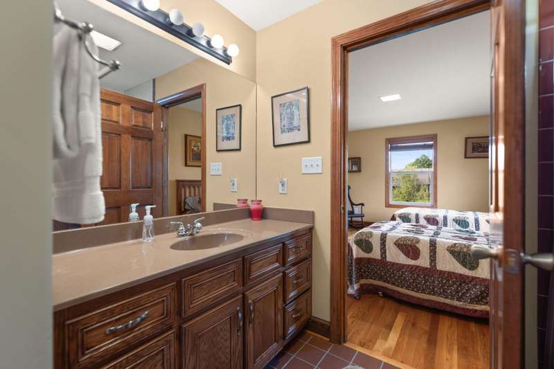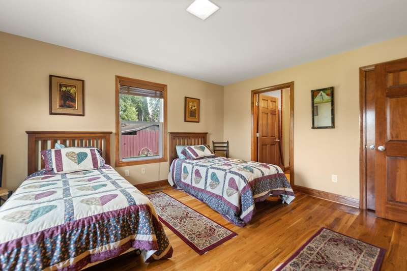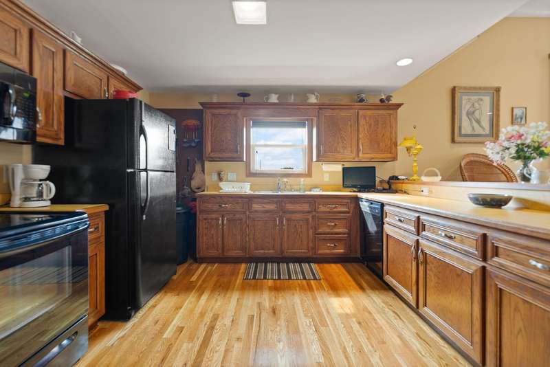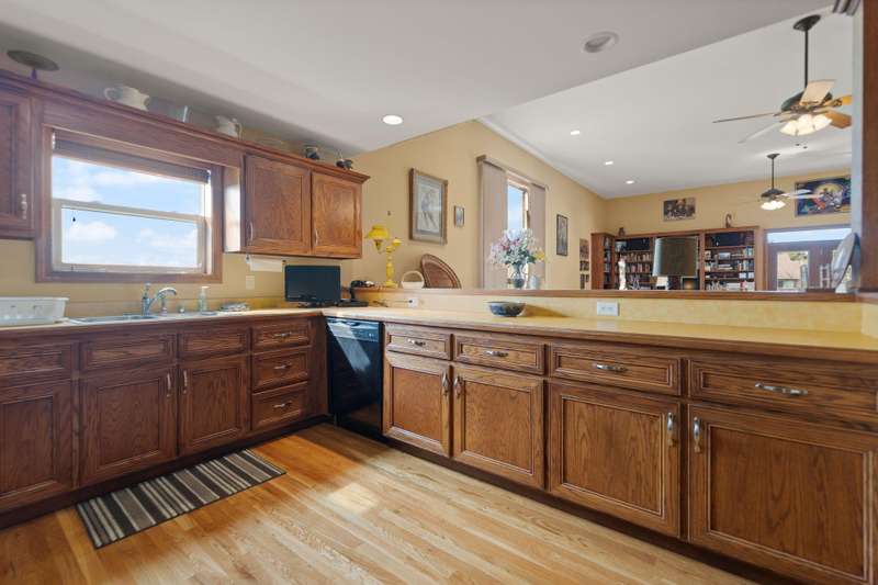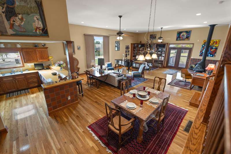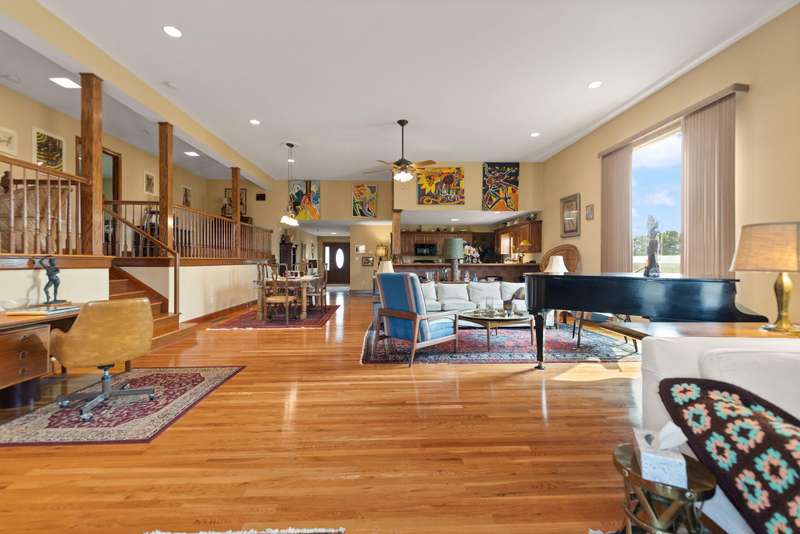 This custom-built residence effortlessly blends mid century modern charm with timeless sophistication. Unique, spacious, and refined, it offers the perfect setting for both everyday living and memorable gatherings. Step into the welcoming foyer, where gleaming hardwood floors guide you into a grand living area and kitchen. The open-concept design is ideal for entertaining or unwinding, with a cozy wood-burning chiminea as its centerpiece. The kitchen is both stylish and functional, featuring a genuine built-in butcher block alongside generous counter space. The expansive living room boasts soaring ceilings and custom built-in bookshelves, creating a striking yet inviting atmosphere. The oversized primary suite is a true retreat, complete with a walk-in closet, spa-like bath with soaking tub and separate shower, an oasis of comfort and relaxation. Two additional bedrooms are equally impressive in size, connected by a convenient Jack-and-Jill bathroom and offering ample closet space. Every detail of this remarkable home reflects thoughtful design and enduring character. Overflowing with charm, it's more than a property ~ it's a lifestyle. Simply put, this is a must-see gem.