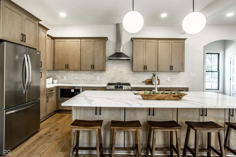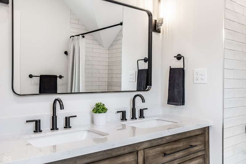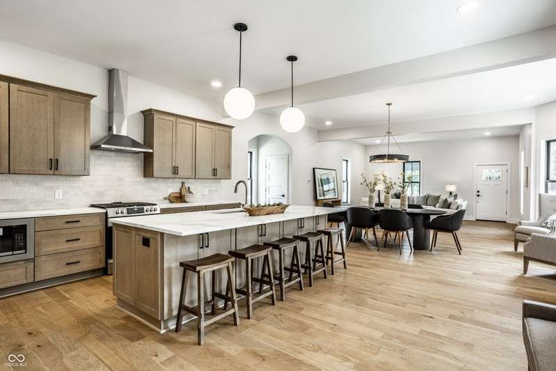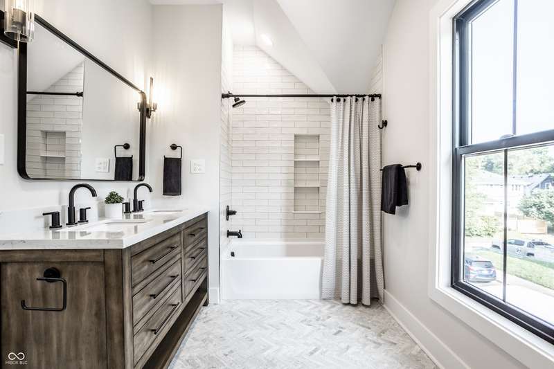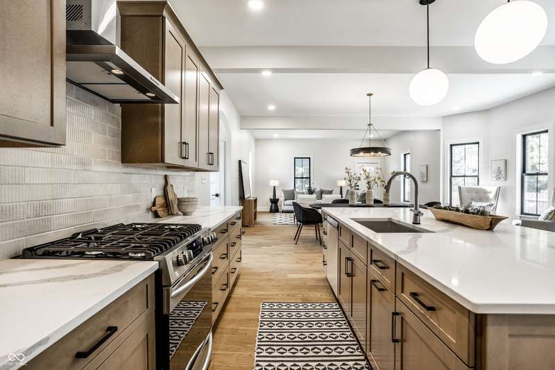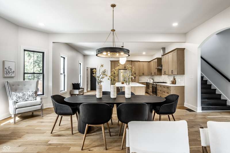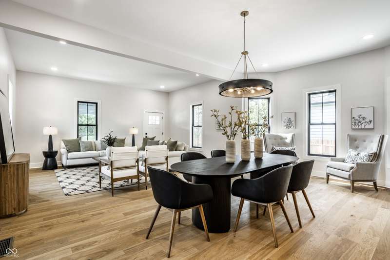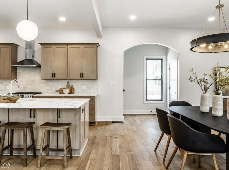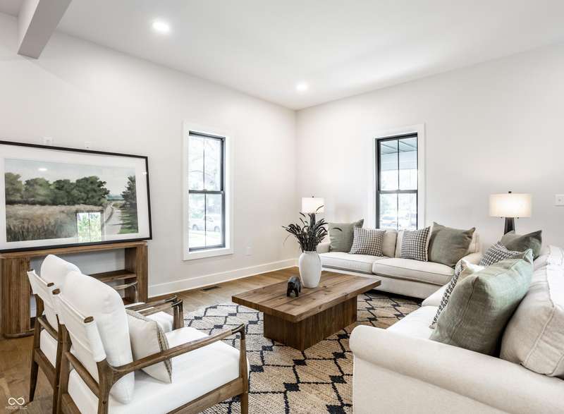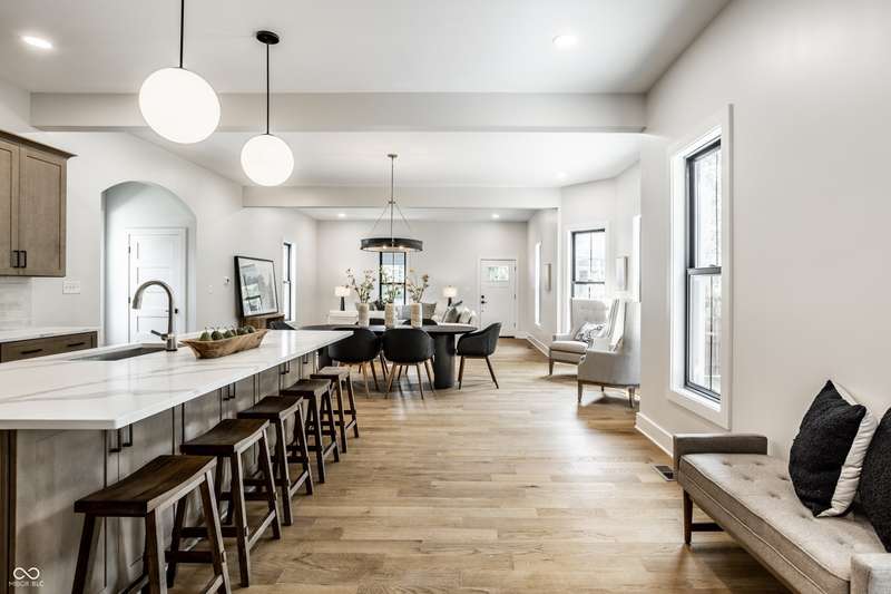 Welcome to brand-new construction inside and out -- just a 10 minute drive from downtown Indy, This fully reimagined 4-bedroom, 2.5-bath home by custom home builder Jensen Design has been taken down to the studs and rebuilt with thoughtful design, comfort, and modern living in mind. With a brand-new second story, all-new electrical (200-amp service), plumbing (PEX), dual HVAC systems, Anderson windows, siding, and more, every inch of this ~2,600 sq ft home is fresh, functional, and move-in ready. Step inside to an open-concept main floor featuring a bright great room, spacious family room, and a stunning kitchen perfect for entertaining and everyday living. Custom archways and architectural details add warmth and character, while a tucked-away half bath and mudroom provide everyday convenience. Upstairs, a large landing leads to four generous bedrooms, including a luxurious primary suite with a walk-in closet and spa-like en suite bath featuring a double vanity and marble tiled walk-in shower. The second full bath includes a double vanity and private water closet, and the laundry room is thoughtfully located near all the bedrooms. Outside, enjoy a fully fenced backyard with a large patio ideal for summer fun and relaxation. Nestled on a quiet, friendly street surrounded by other renovated and new homes, this one delivers the layout, style, and turnkey quality buyers love - Don't miss this rare opportunity to own a like-new home in an established neighborhood!