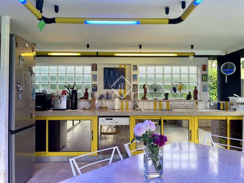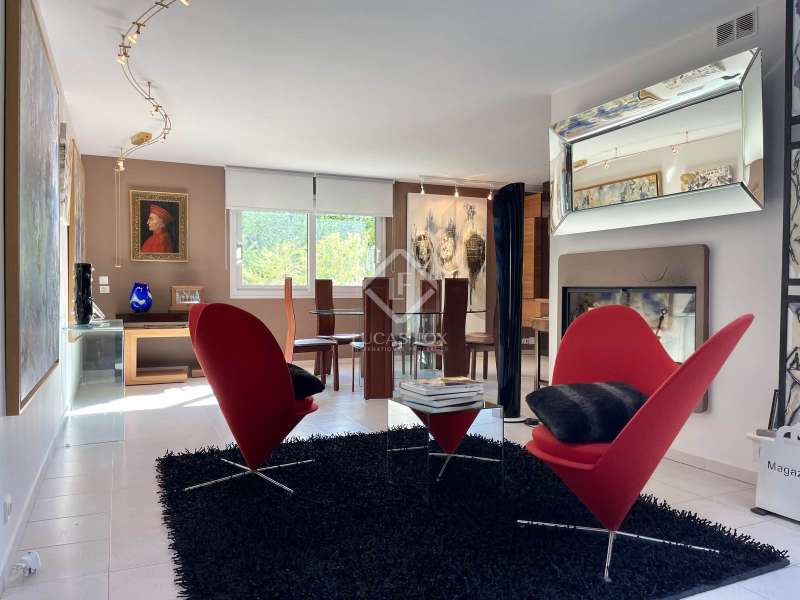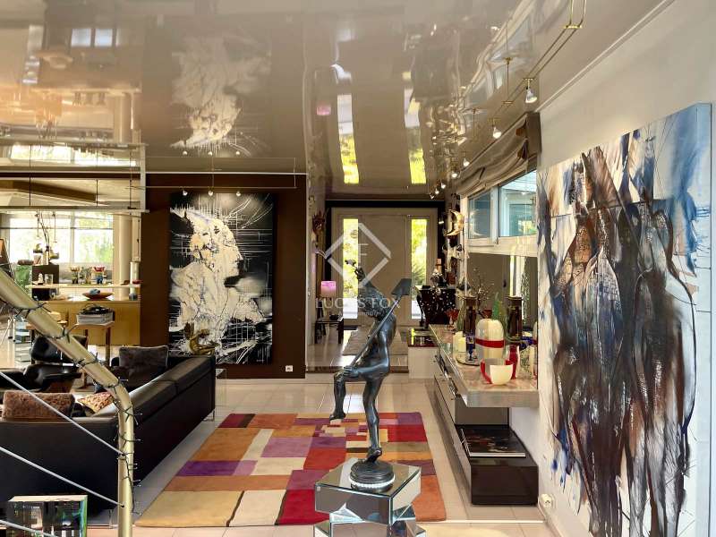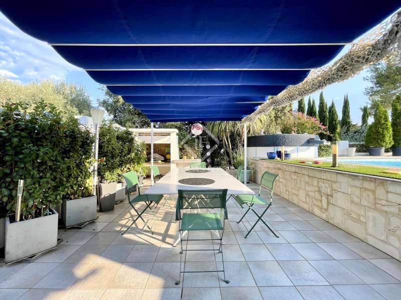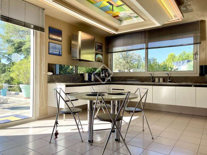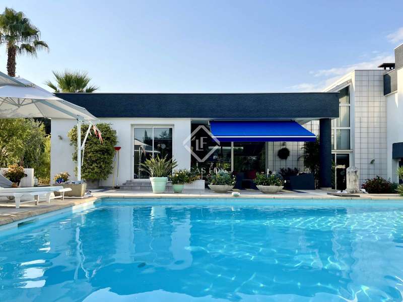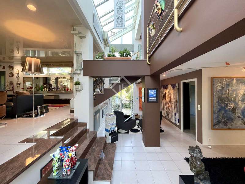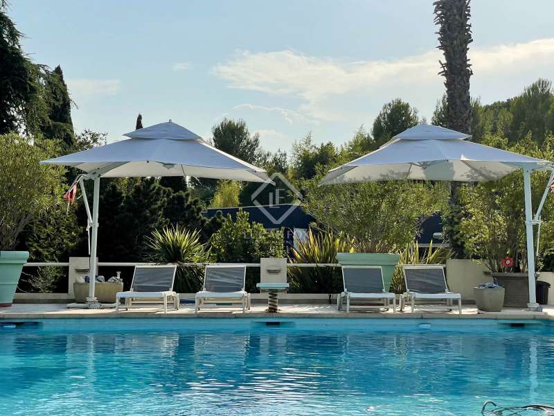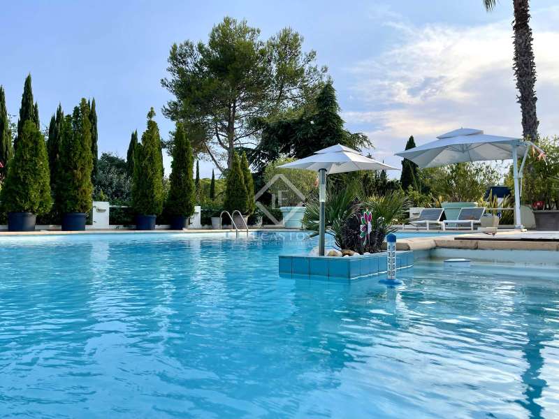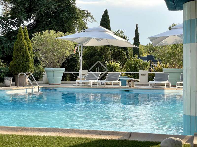 Co-exclusive Lucas Fox International Properties, remarkable architect's house with its immense garden finely planted and landscaped. Halfway between Montpellier and Nîmes, the villa is located less than 5 minutes from the motorway and less than 30 minutes from both cities. Built with the assumed architectural authenticity of the 80s-90s, this property stands out for its large volumes by playing subtly on the different levels that compose it. The entrance opens onto a vast living room bathed in light and open, with very appreciable ceiling heights, which is made up of different levels and spaces. The kitchen with its pantry, a bedroom with its bathroom, an intimate alcove as well as an independent shower room are articulated around this large living room. Two suites share the upper level: a guest bedroom with shower room and the master bedroom, a spacious 60 m² room, which has a whirlpool bath and an adjoining room overlooking the swimming pool. At the entrance to the park, an annex of approximately 100 m² is added to the main house and has an independent studio, a greenhouse and a gym. Adjoining the latter, a triple closed garage completes the services of this property. The garden, meanwhile, elegantly embraces the entire villa. The park has been landscaped with a certain taste and great care has been taken in its layout. A huge swimming pool, accompanied by a sheltered summer kitchen, complete this exceptional property. Finally, all the services are at the level you would expect from a villa of this standing: reversible air conditioning, underfloor heating, heated swimming pool, etc. Obtain the complete file and additional information from your dedicated agent, Sébastien ANGLADE, Commercial Agent - RSAC n° 813 793 833 Montpellier. Information on the risks to which this property is exposed is available on the Géorisques website: www.georisques.gouv.fr.