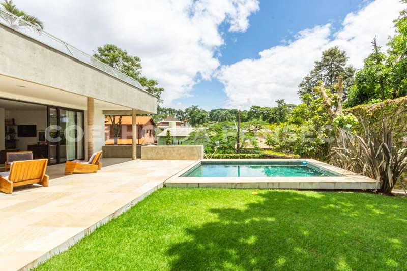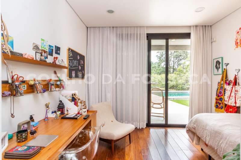 Linda casa,moderna e atual, com arrrojado projeto de arquitetura em "L" que privilegia a luz natural,integração de ambientes e vista para o verde¹ Amplo living com cozinha americana integrada a varanda,lavabo 3 ótimas suites tudo integrada a varanda,com paisagismo e piscina climatizada.No piso superior há um amplo espaço com escritório,home theater e uma agradavel varanda com linda vista panorâmica!na area exterana com uma linda casa de boneca,horta,ampla garagem com oficina, alem de 1 elevador para carga,ar condicionado em todos os ambientes,armários embutidos em todos os ambientes.