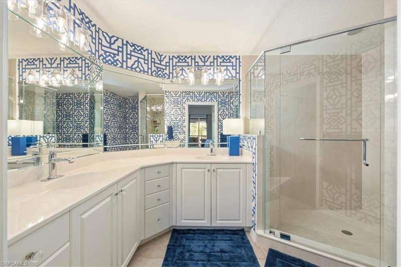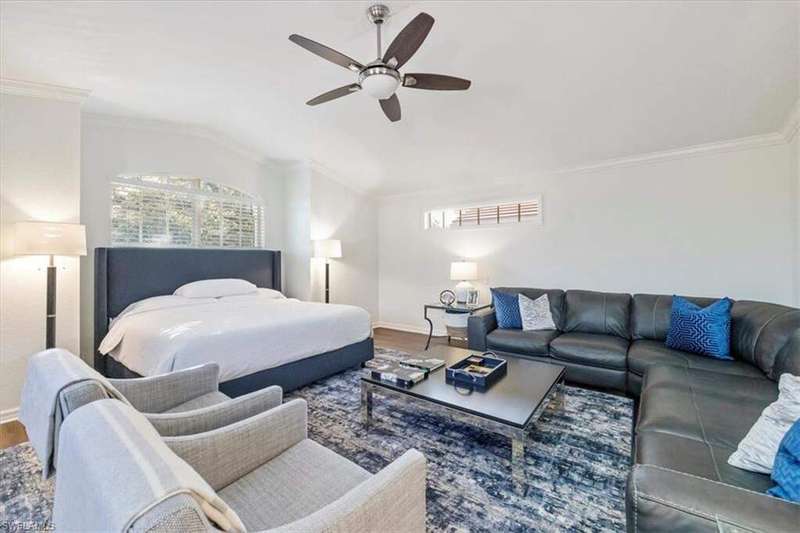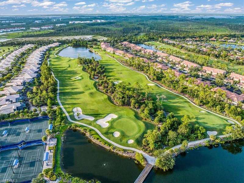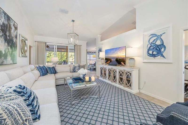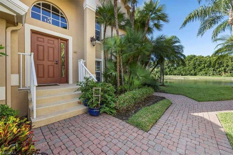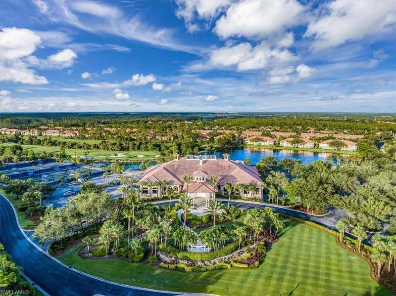 FULLY FURNISHED! Spectacular Coach home features 3 bedrooms plus a den for maximum enjoyment year-round or seasonally! This fabulous home will delight you from the moment you enter the first-floor foyer and begin see the designer touches that await you. As you make your way up the stairs, you will appreciate the fine attention to detail throughout with freshly painted walls and fantastically designed wallpapers that are beautifully complimented by the window treatments. The kitchen is a spacious and delightful venue to prepare fun feasts and with the informal and formal dining spaces, a perfect home to entertain in! The glorious living room with Cathedral ceiling overlooks the screened lanai where absolutely stunning SWFL sunsets are yours to enjoy overlooking the lake and golf course. the seller has remastered the generous flex room to a guest suite complete with seating area. You may decide it's the perfect office area or playroom or more! Incredibly updated, this home is simply divine and ready for you to begin your Grandezza lifestyle. Grandezza has tiered membership options and the challenging golf course is designed to maximize your play and lighted tennis courts offer opportunities to enjoy a match with likeminded players. The absolutely gorgeous clubhouse features the Cabana Bar at the pool, Bogeys for a casual meal or more formal dining and a great bar in the clubhouse, great for social gatherings and lots of meeting spaces. The pro-shop has all you will need for golf or tennis and the exercise room is loaded with equipment to make your work outs work! Idyllically located, near shopping, dining, easy access to I-75 and RSW airport. A short drive to sandy gulf beaches, downtown Naples or the River District in Fort Myers!