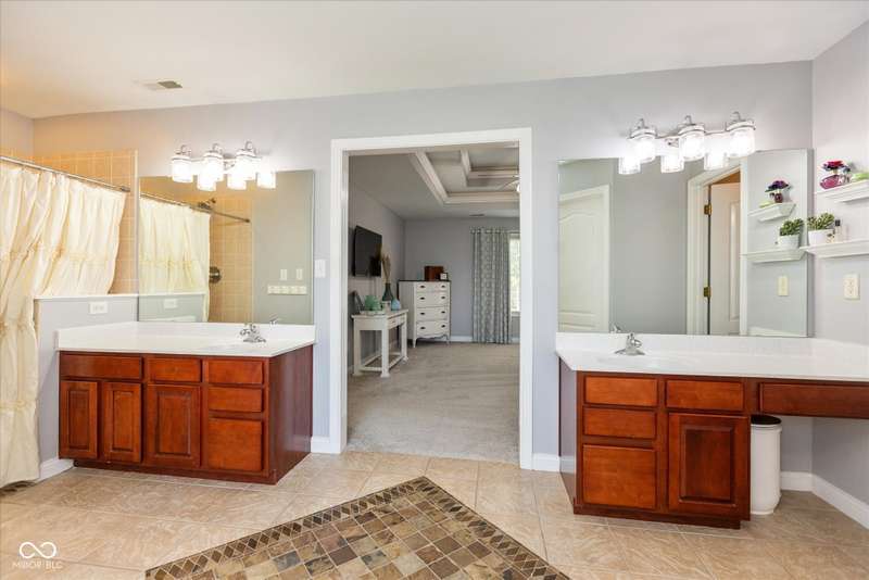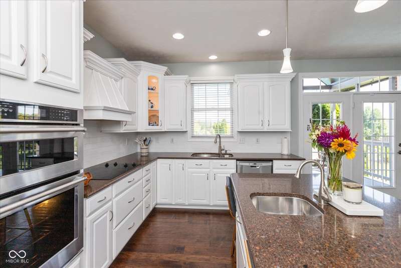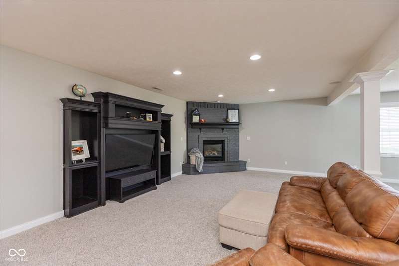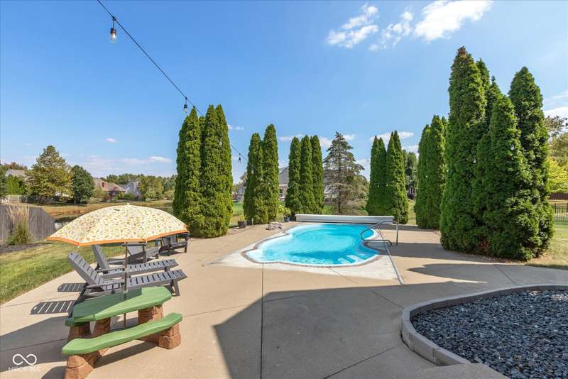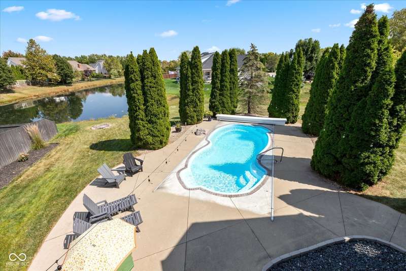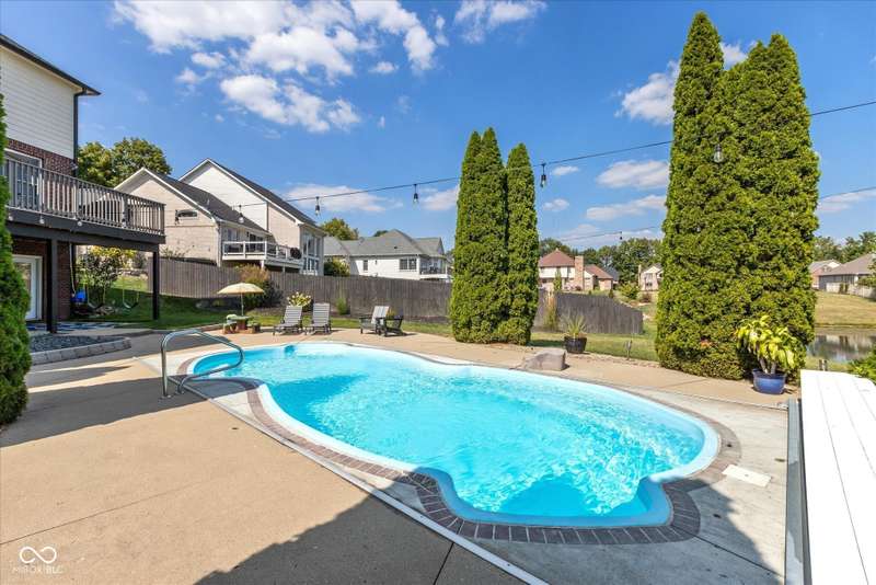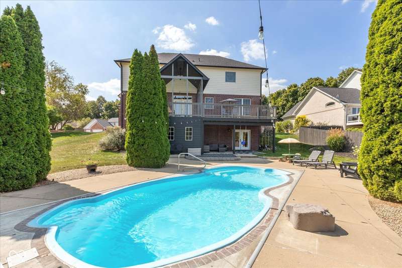 Beautiful custom home in Timberlakes on a Pond! Great all brick curb appeal and a .44 Acre Lot. First floor with 9' ceilings and lots of openness. From the large entry to the open kitchen & family room this home is very inviting. Kitchen has custom layout, granite counter tops and custom island. Built-in oven, microwave and walk-in pantry offer even more highlights for this kitchen. Lots of natural light pours into the home. Family room has gas log fireplace. Also, on main level is a Office/playroom with glass double doors (could even be a main level bedroom-#6) The top of the landing upstairs offers a nice window seat with storage space. Carpet up here was installed in 2021. Bedrooms #2,#3 & #4 all have walk-in closets. Full bath has new tub & surround. Nice laundry room is upstairs as well! Primary bedroom is huge (room for sitting area) and custom trayed ceiling. Primary bathroom has separate vanity sinks, walk-in shower and large Jacuzzi jetted soaking tub separating 2 walk-in closets. Basement has 9' ceilings as well and has a 5th Bedroom, Full bath and large living/playing area. And don't miss the corner gas fireplace with brick hearth. Basement walks-out to covered living space and an amazing in-ground pool with auto cover. Pool is heated by a spa heater and updated sand & chlorinator in 23'. There is also exterior storage area under the covered porch area. Property goes all the way to the pond. This is a private pond owned by all of the homeowners on the pond. Garage is a full 3 car, has a workbench and a dog washing area. Zoned HVAC system, Grinder pump 23', water heater is 75 gallon