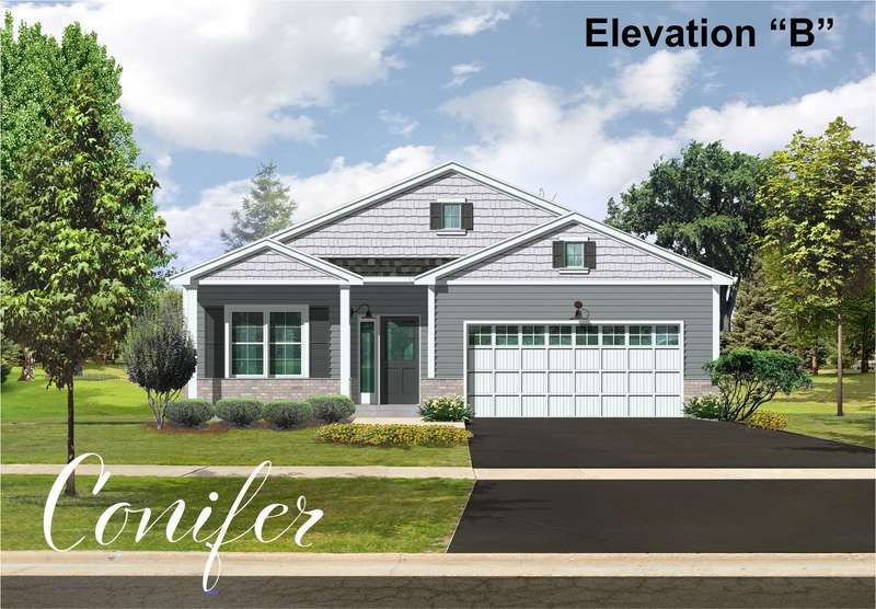 Discover the rare opportunity to live in an intimate community setting-without the crowds of a large subdivision. The Conifer model offers thoughtful ranch design with an inviting covered front porch and an open-concept floor plan ideal for both entertaining and day-to-day living. The kitchen, dining, and living areas flow seamlessly together, while the spacious primary suite serves as a peaceful retreat with a walk-in shower, dual sink vanity, and walk-in closet. A secondary bedroom is located near a full hall bath for guests or family. Additional highlights include a main-floor laundry, FULL BASEMENT, and an attached 2-car garage. Stillwell Grove is a limited collection of just 41 homesites-perfect for buyers seeking the convenience of a new construction community with the privacy and charm of a small neighborhood with lawn care and snow removal included! This neighborhood is not age-restricted and provides the ease of lawn care and snow removal included-true low-maintenance living at its best! Choose from thoughtfully designed ranches and 2-story homes, each featuring inviting covered front porches that set the stage for warm welcomes and outdoor relaxation. Serviced by the highly rated Huntley School District 158 and right near the booming Rt. 47 corridor-putting shopping, dining, and conveniences just steps from your door. Taking presale reservations now-be a part of Huntley's newest community: Stillwell Grove!