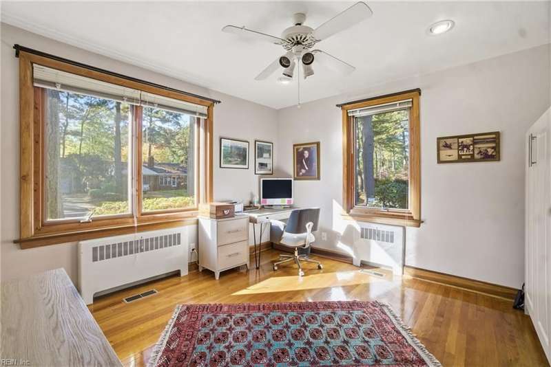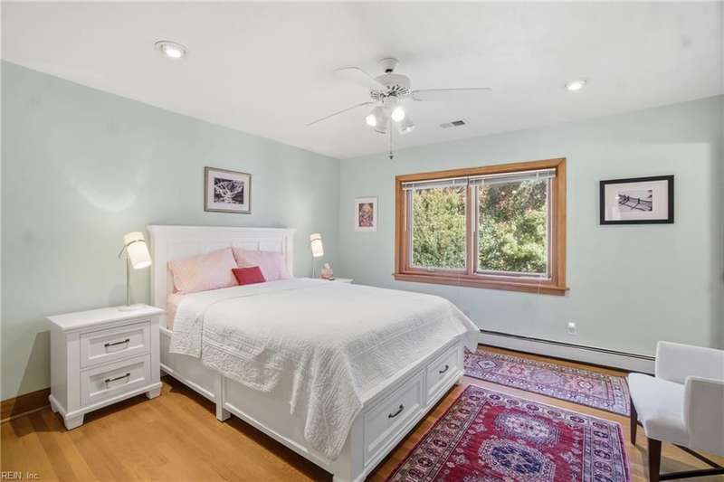 Situated in Norfolk's sought-after Lakewood neighborhood, this beautifully updated mid-century modern home offers 4 bedrooms, 2.5 baths, and timeless architectural style on a spacious 10,000 sq. ft. lot.Step inside to find a welcoming foyer that opens to a bright living area anchored by a classic fireplace and gleaming hardwood floors. The sunroom extends the living space, perfect for morning coffee or enjoying views of the private backyard.The newly renovated kitchen features Café appliances, modern cabinetry, and sleek finishes that blend seamlessly with the home's original charm. The first-floor primary bedroom provides convenience and comfort, while upstairs you'll find an additional bedroom plus a versatile bonus room ideal for a home office, playroom, or guest space.With its combination of thoughtful updates, warm mid-century details, and prime Lakewood location close to parks, restaurants, and local schools, this home is move-in ready and full of character.